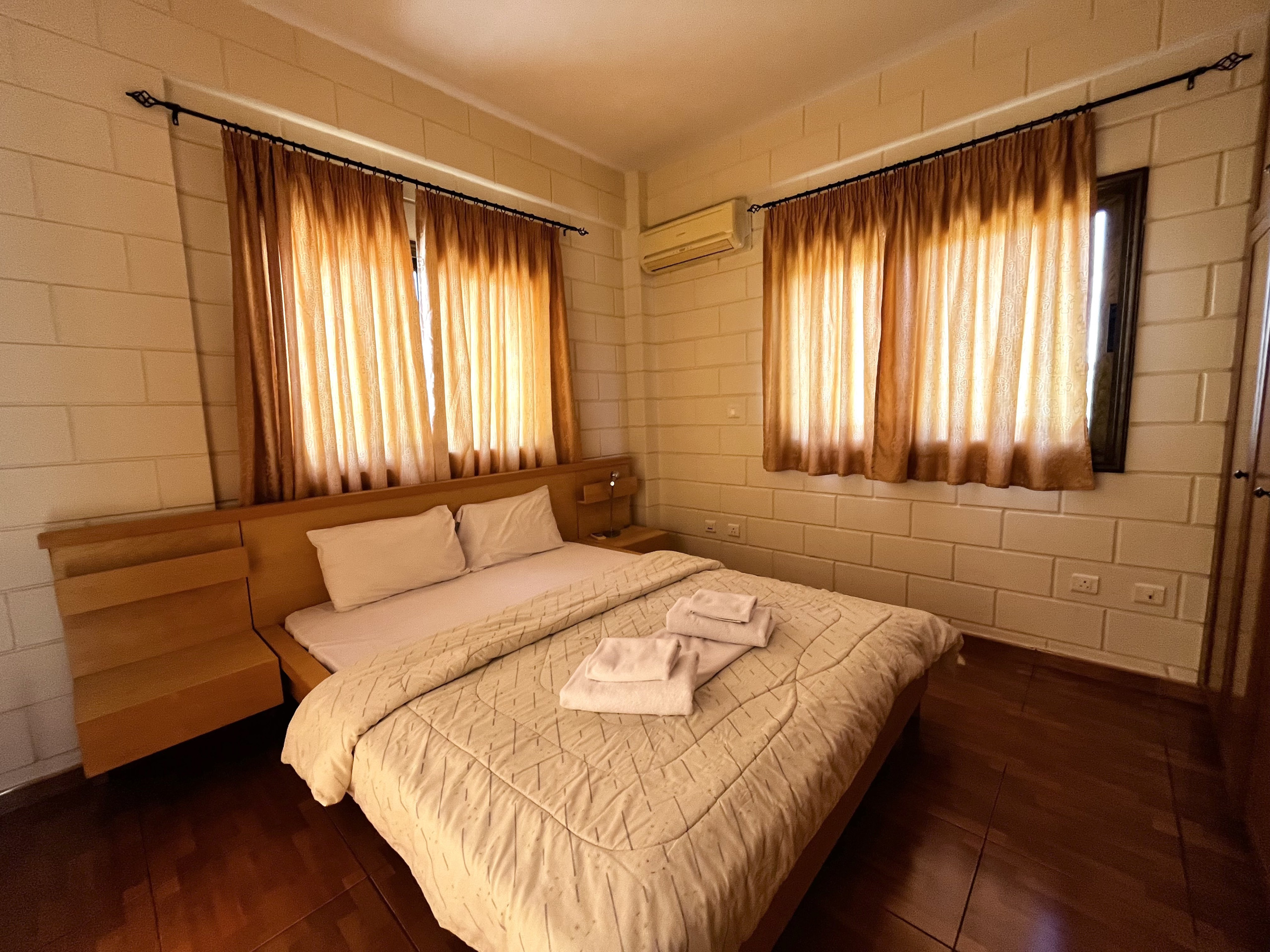 Im Obergeschoss befinden sich 2 Schlafzimmer und ein Badezimmer (mit Badewanne). Beide Schlafzimmer sind mit Doppelbetten ausgestattet. Insgesamt können 4 Personen bequem schlafen, für einen weiteren Gast wird ein komfortables Klappbett bereitgestellt. Alle Schlafzimmer verfügen über geräumige Schränke und Split-Klimaanlagen (Heizen / Kühlen).