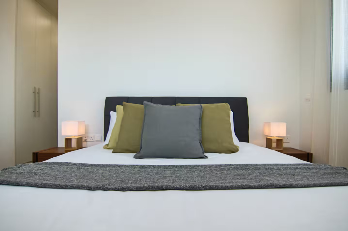 Die Wohnung verfügt über 2 Schlafzimmer, beide mit Klimaanlage. Eines davon hat ein Doppelbett und einen Kleiderschrank. Das zweite Schlafzimmer hat zwei Einzelbetten. Das Hauptschlafzimmer verfügt über ein eigenes Badezimmer. Außerdem gibt es ein zweites Badezimmer in der Wohnung. Alle Badezimmer verfügen über eine Dusche, Warm- und Kaltwasser, ein Waschbecken und eine Toilette.