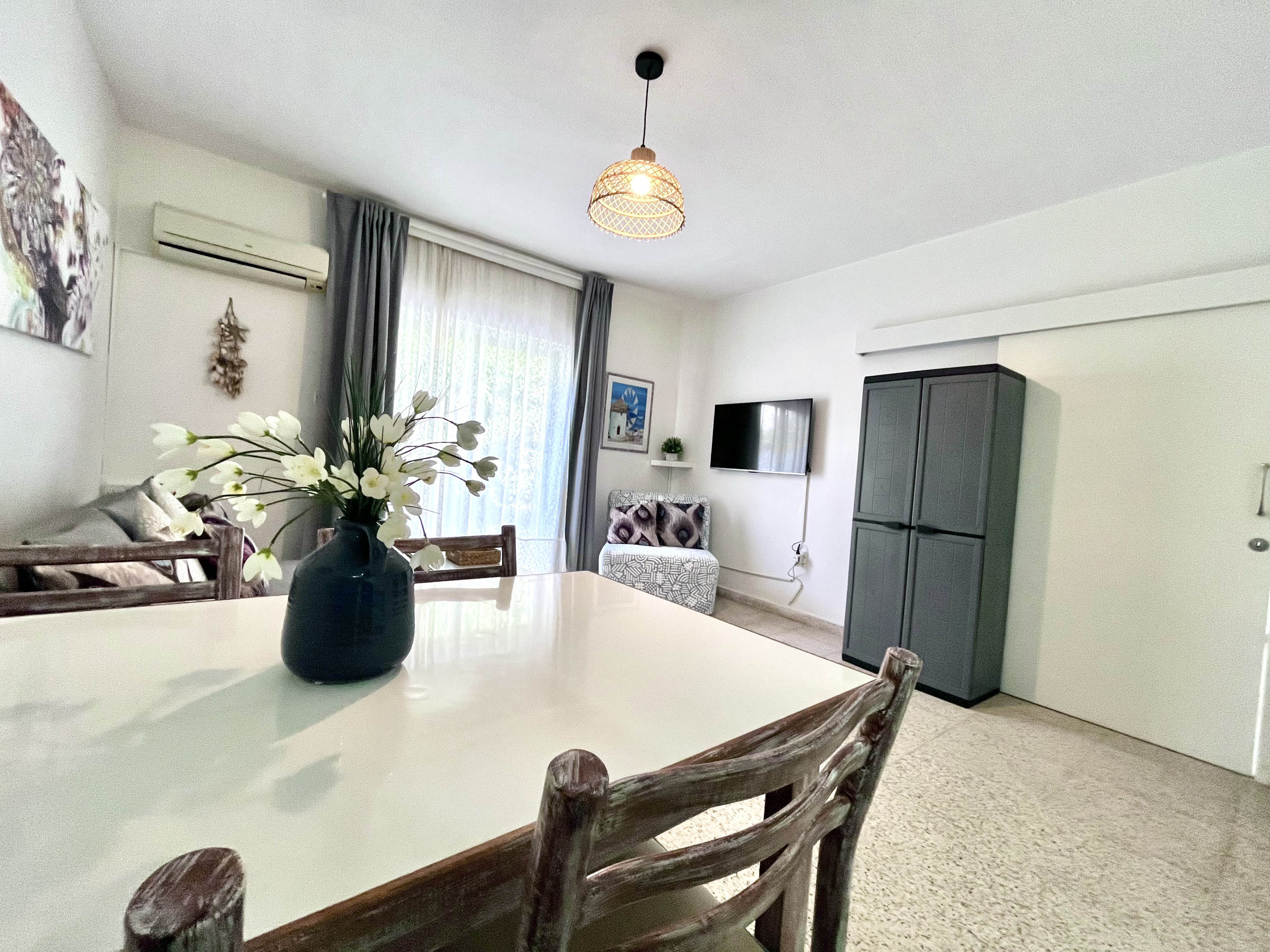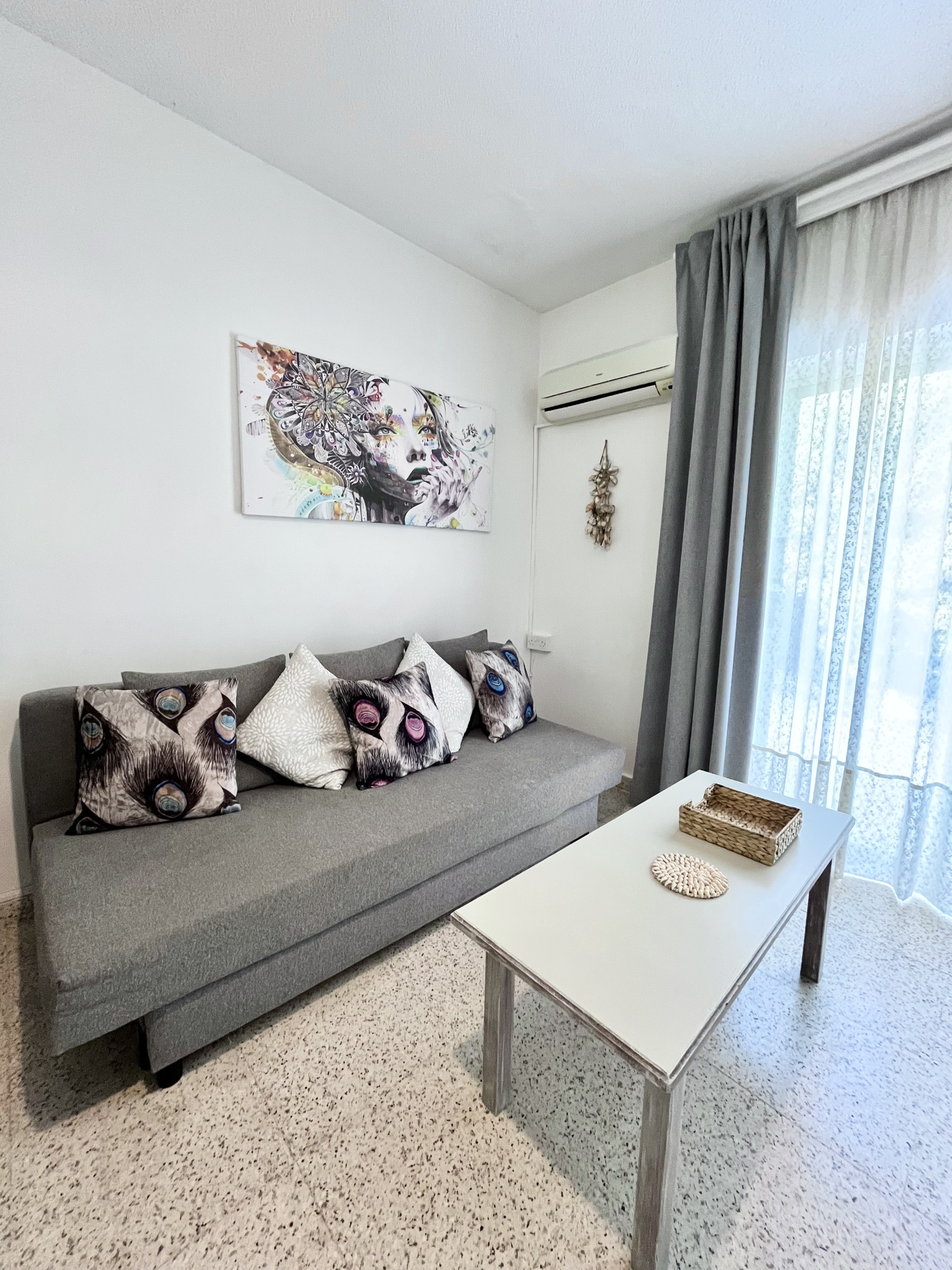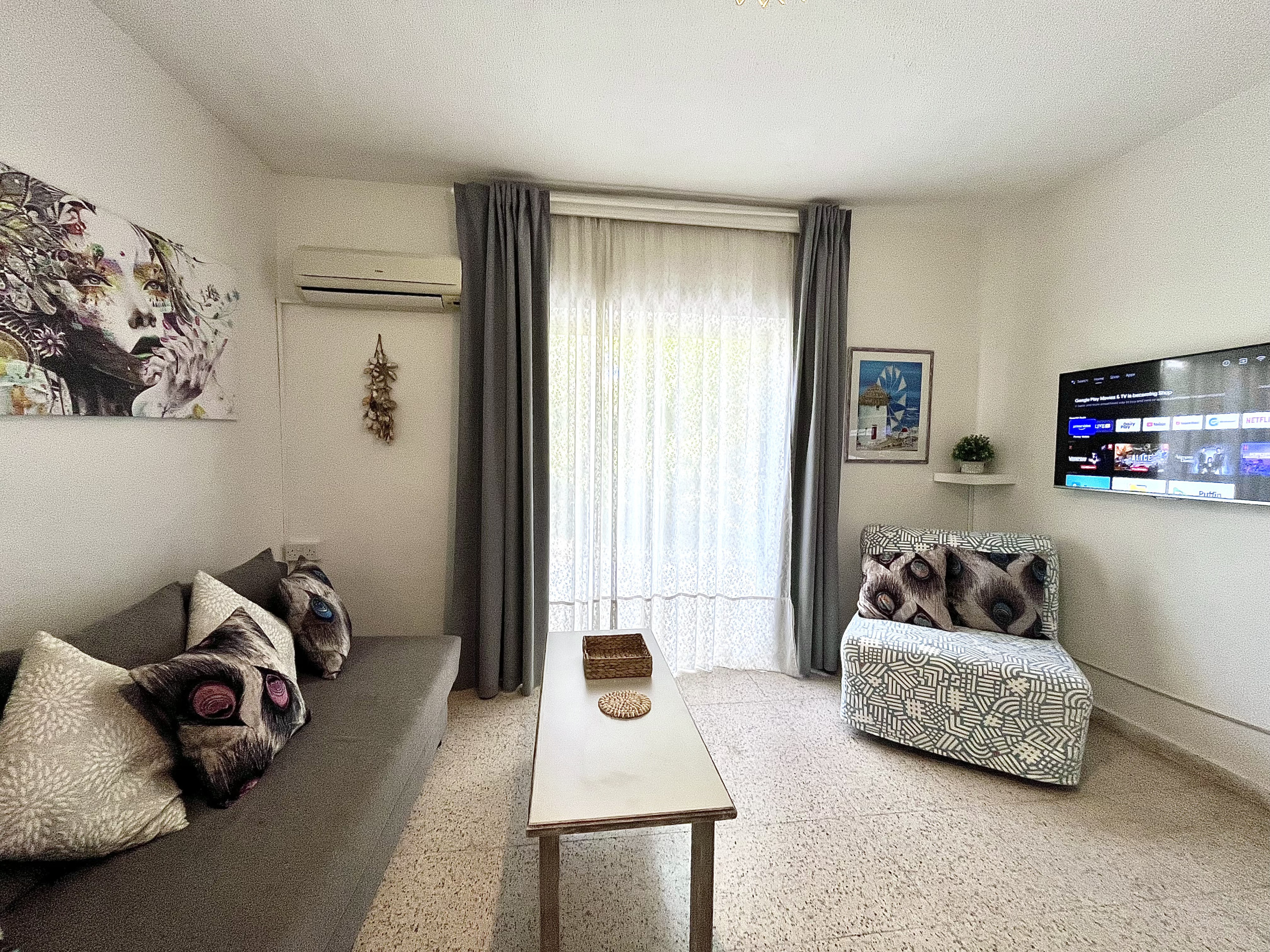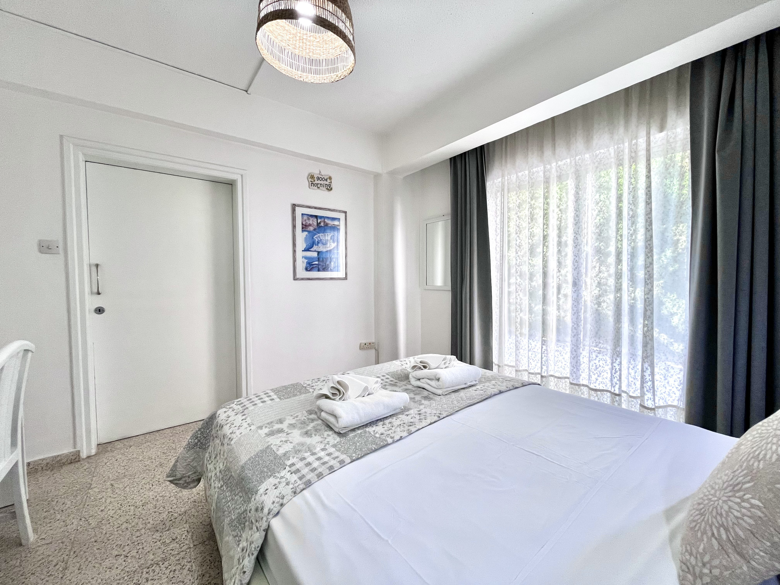 Erleben Sie den Charme von Ayia Napa in unserem gemütlichen 1-Zimmer-Apartment mit einem einzigartigen großen Fenster, das beim Öffnen ein balkonähnliches Gefühl schafft.