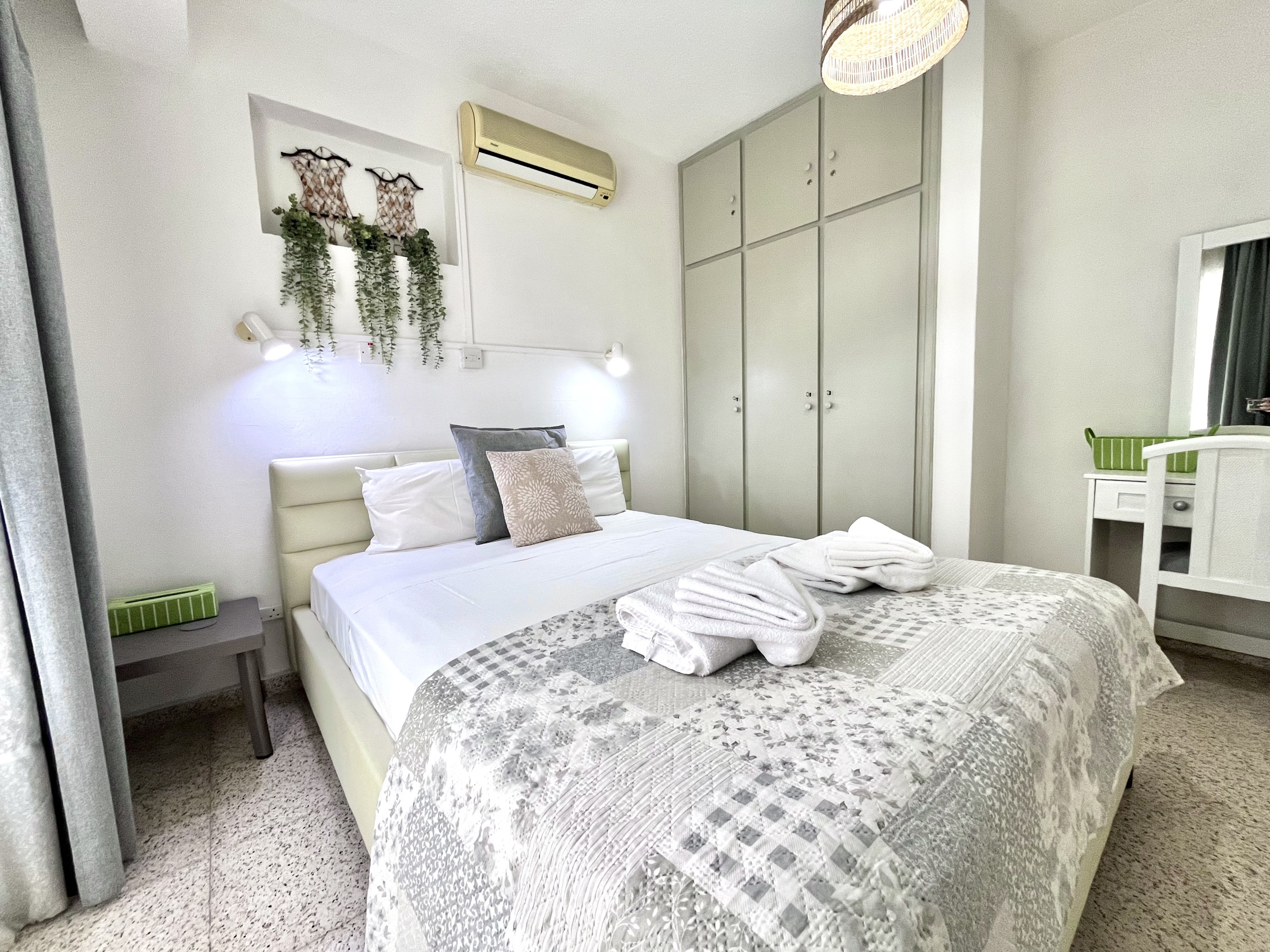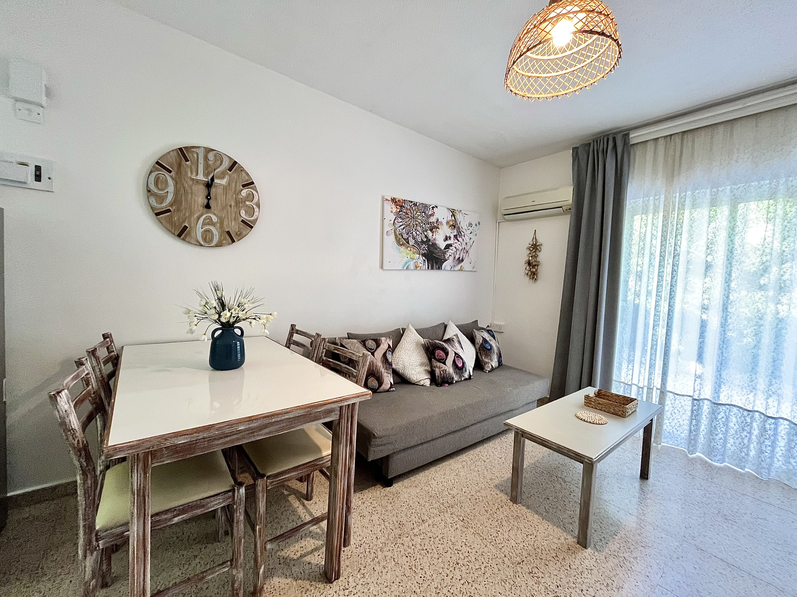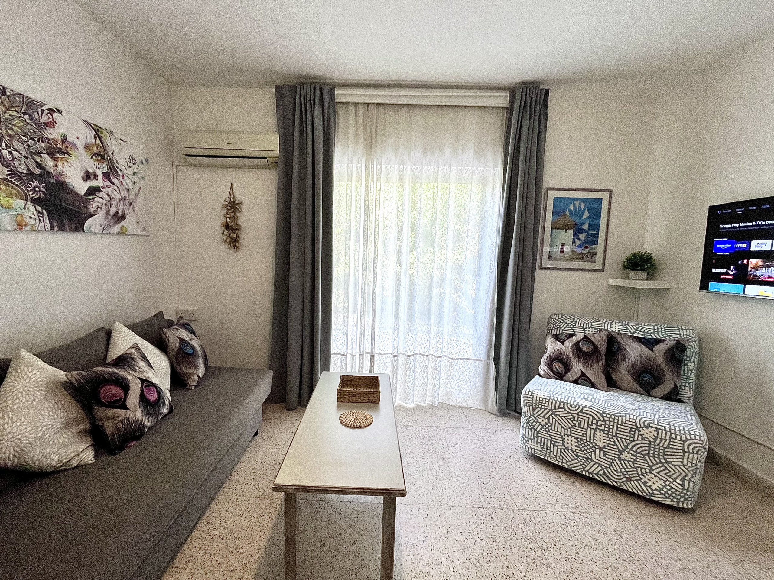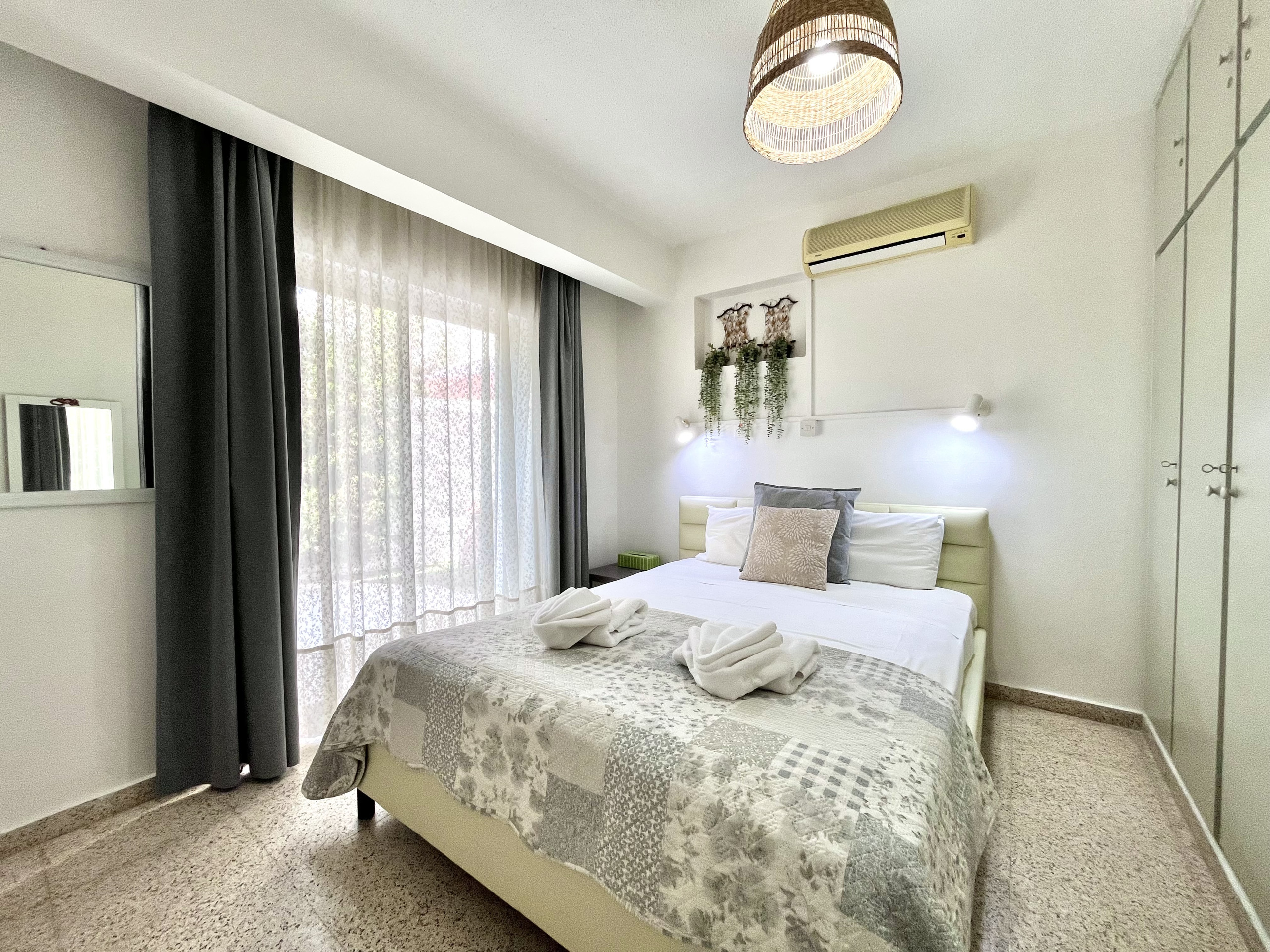 Erleben Sie den Charme von Ayia Napa in unserem gemütlichen 1-Zimmer-Apartment mit einem einzigartigen großen Fenster, das beim Öffnen ein balkonähnliches Gefühl schafft.