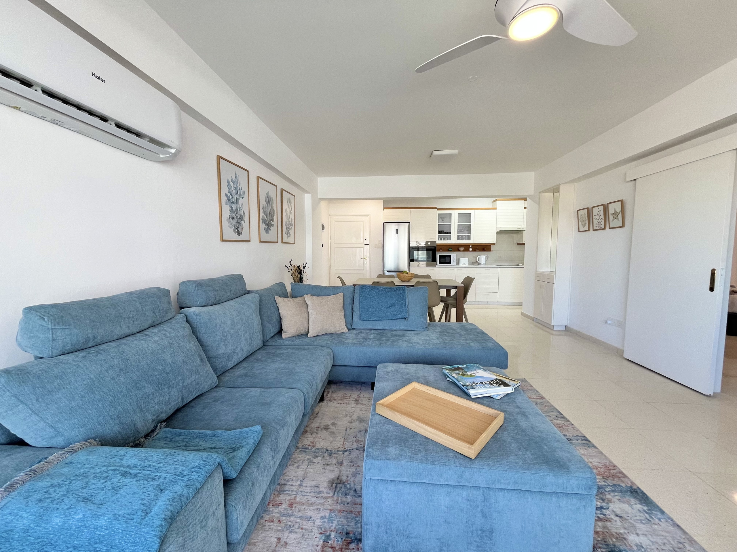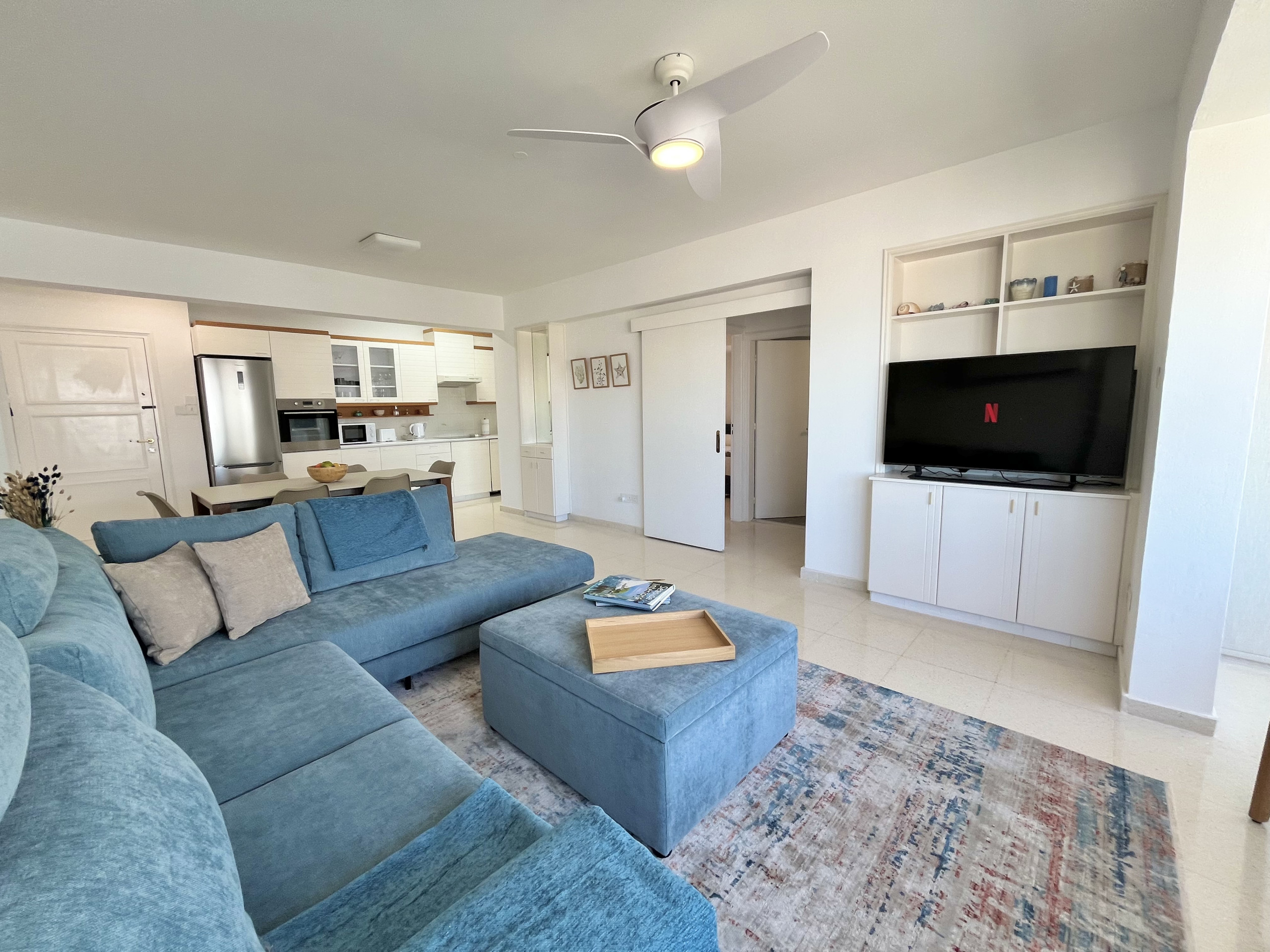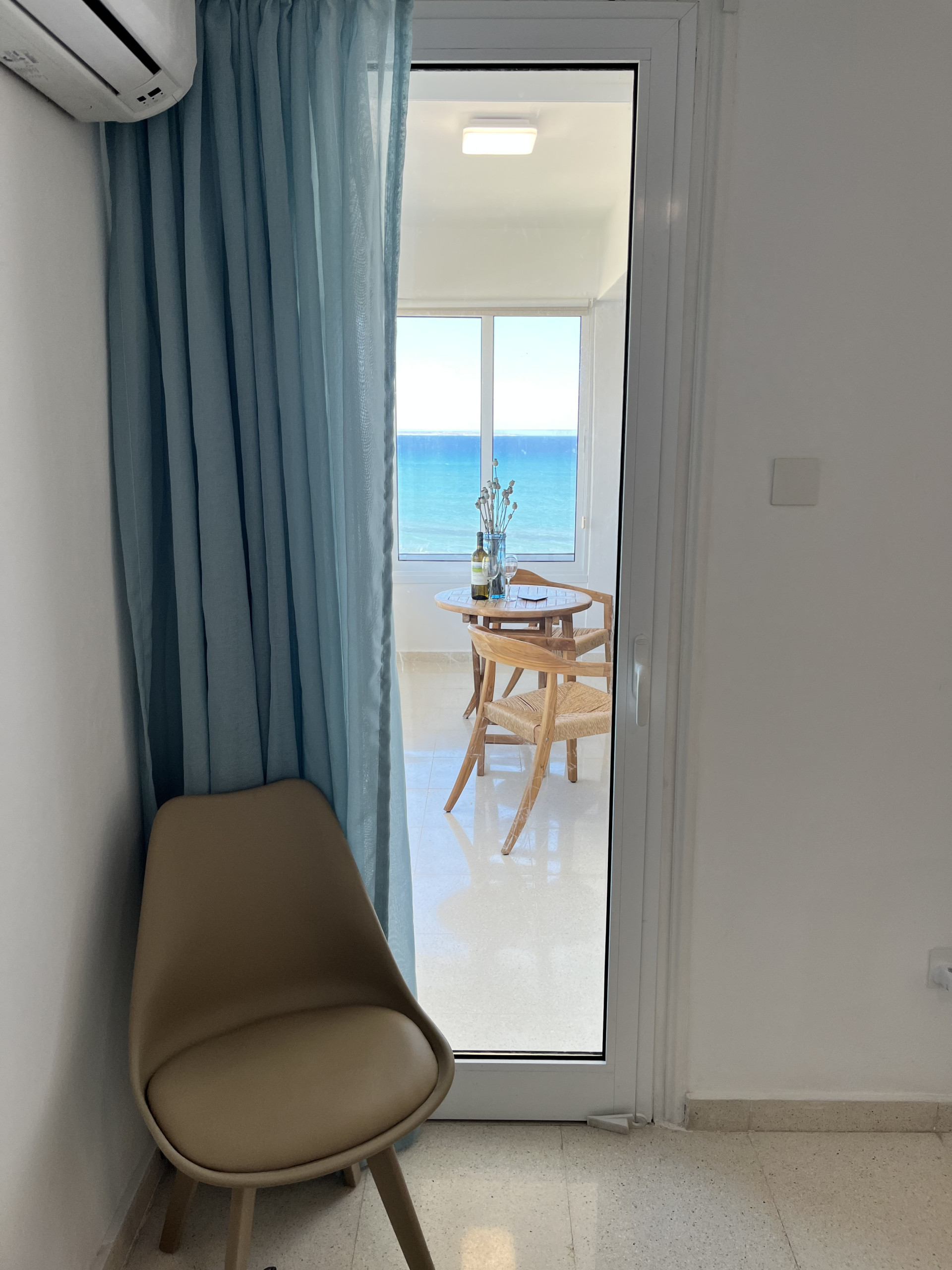 Die Ferienwohnung in Larnaca verfügt über 2 Schlafzimmer und hat eine Kapazität für 5 Person(en). Die gemütlich und sonnige Unterkunft verfügt über 70 m² liegt direkt am Strand und verfügt über eine tolle Aussicht auf den Strand / das Meer. Die Unterkunft befindet sich in einer charmanten Umgebung und am Meer.Die Unterkunft verfügt über einen Aufzug, eine Waschmaschine, ein Bügeleisen/-brett, ein Internetanschluss (WLAN), ein Föhn, eine Klimaanlage, einen Parkplatz im Freien auf dem Grundstück, 1 Fernseher.Die Offene Küche mit elektrisches Kochfeld ist ausgestattet in einen Kühlschrank, eine Mikrowelle, ein Backofen, eine Spülmaschine, Geschirr/Besteck, Kochutensilien, eine Kaffeemaschine, einen Toaster und einen Wasserkocher.