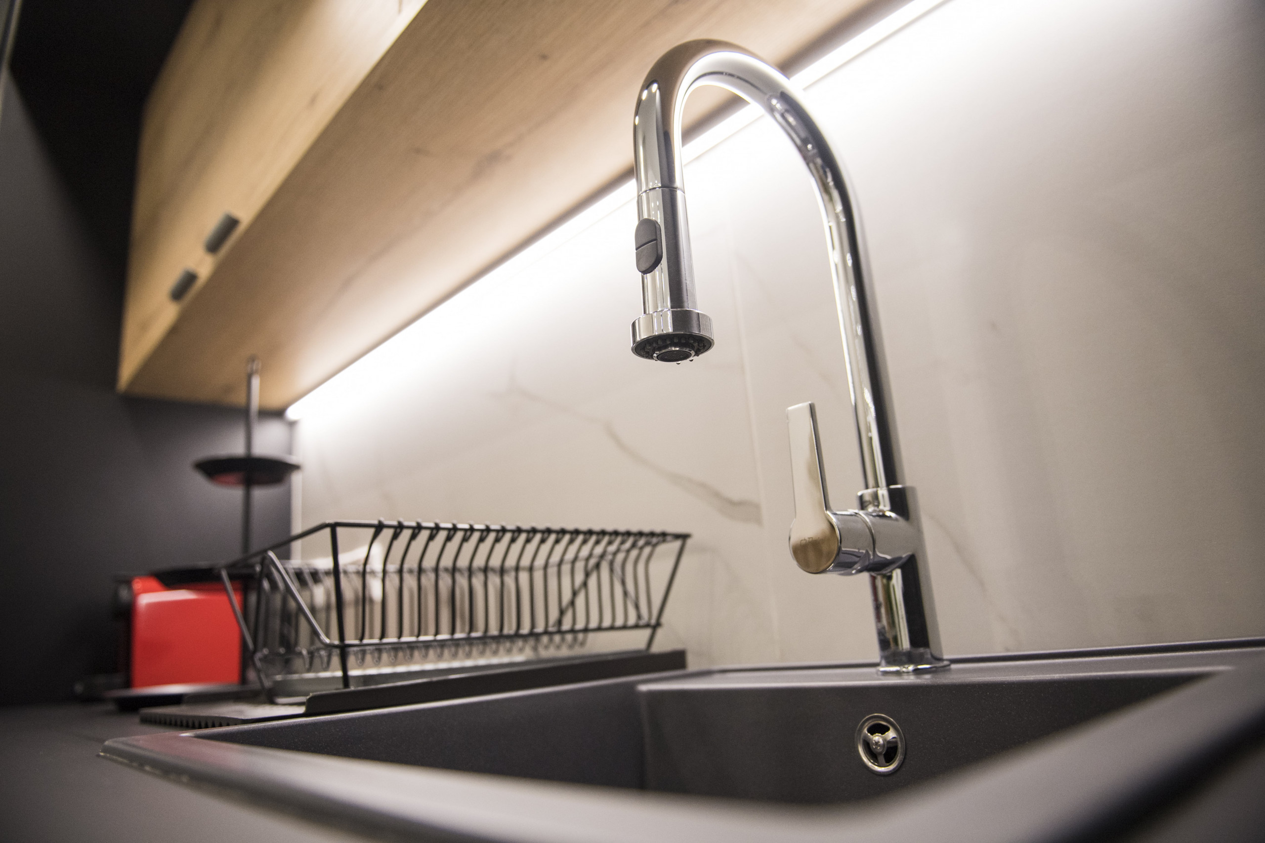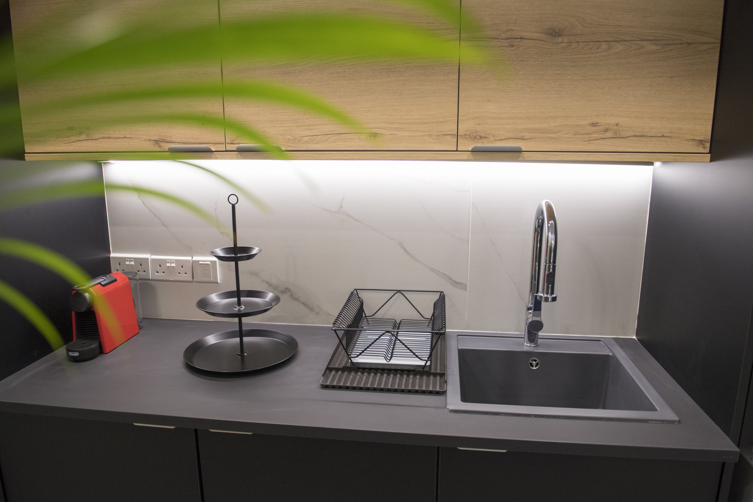 Die Küche ist ausgestattet in einen Kühlschrank, eine Mikrowelle, Gefrierschrank, Geschirr/Besteck, Kochutensilien, eine Kaffeemaschine, einen Toaster und einen Wasserkocher.