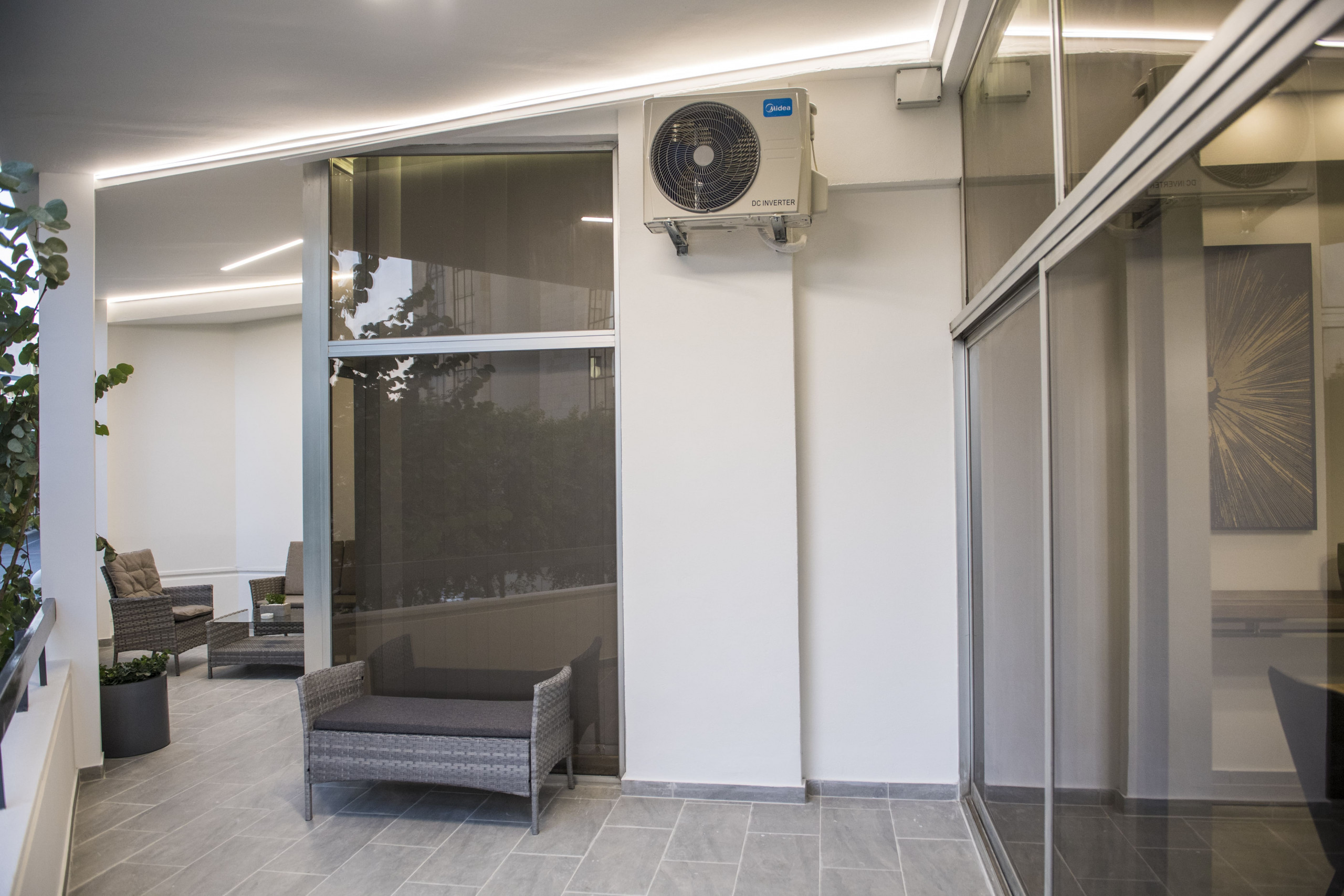 Die Unterkunft verfügt über Gartenmöbel, eine Waschmaschine, ein Bügeleisen/-brett, ein Internetanschluss (WLAN), ein Föhn, ein Balkon, eine Klimaanlage, 1 Fernseher.