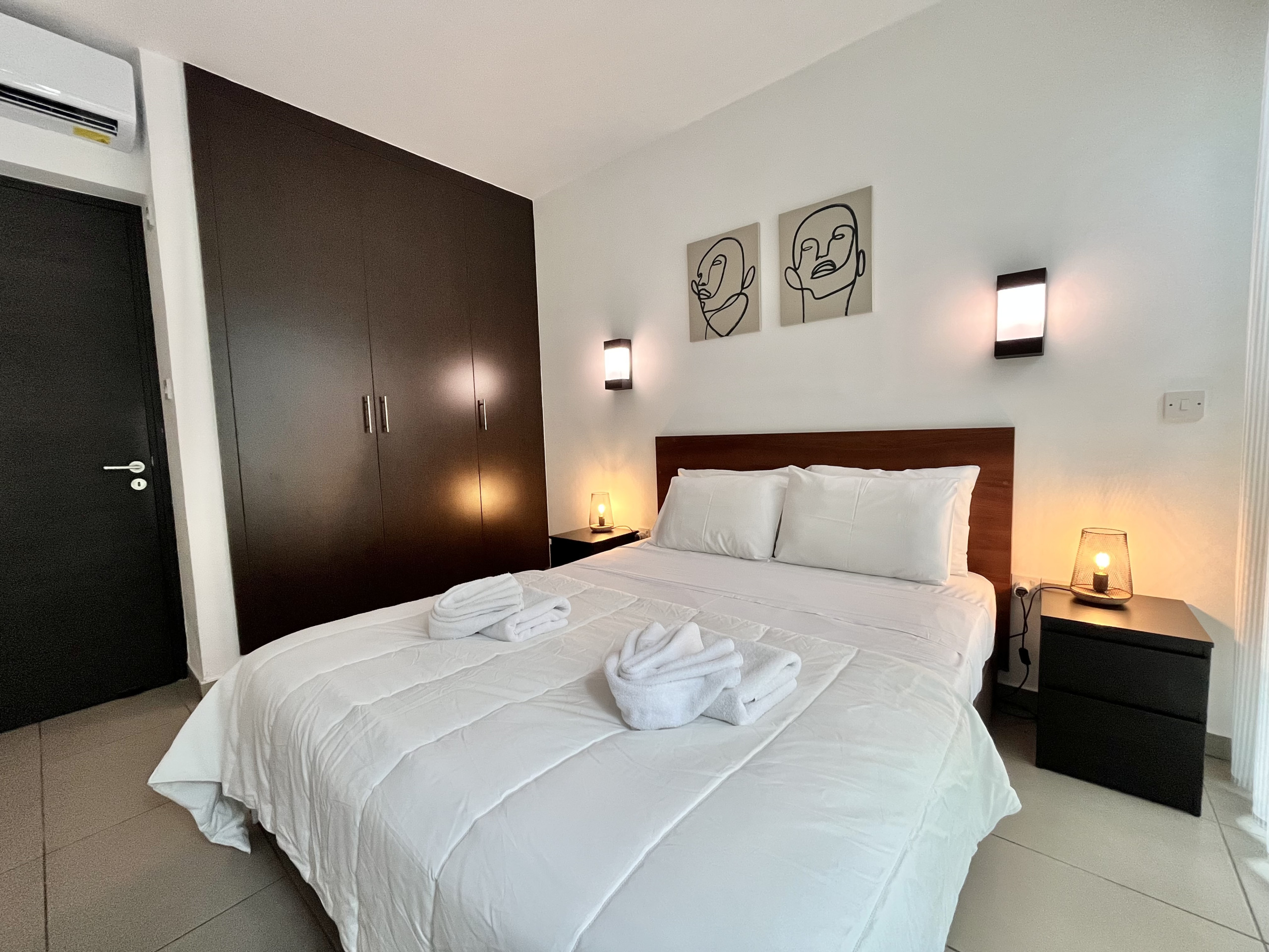 Die Ferienwohnung in Protaras verfügt über 1 Schlafzimmer und hat eine Kapazität für 4 Person(en). Unterkunft verfügt über 50 m². Die Unterkunft verfügt über einen Aufzug, eine Waschmaschine, ein Bügeleisen/-brett, ein Internetanschluss (WLAN), ein Föhn, ein Balkon, eine Klimaanlage, einen Gemeinschaftspool, einen Parkplatz im Freien auf dem Grundstück, ein Fernsehgerät.Die Offene Küche mit elektrisches Kochfeld ist ausgestattet in einen Kühlschrank, eine Mikrowelle, ein Backofen, eine Spülmaschine, Geschirr/Besteck, Kochutensilien, eine Kaffeemaschine, einen Toaster und einen Wasserkocher.
