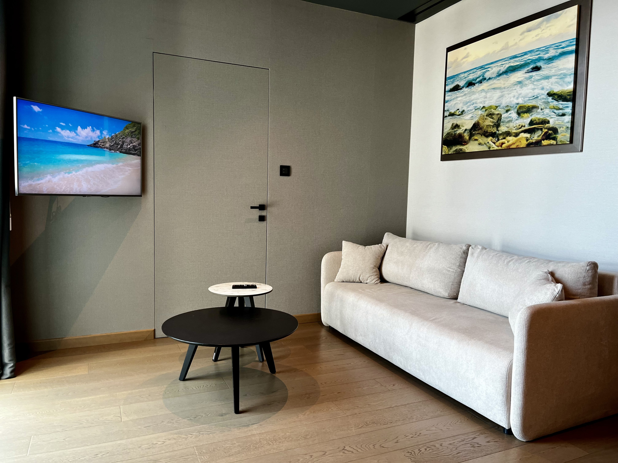 This brand-new, modern 1 BR self-service suite in ONLY Tower blends sleek design with comfort creating a serene retreat for business or holidays stays.