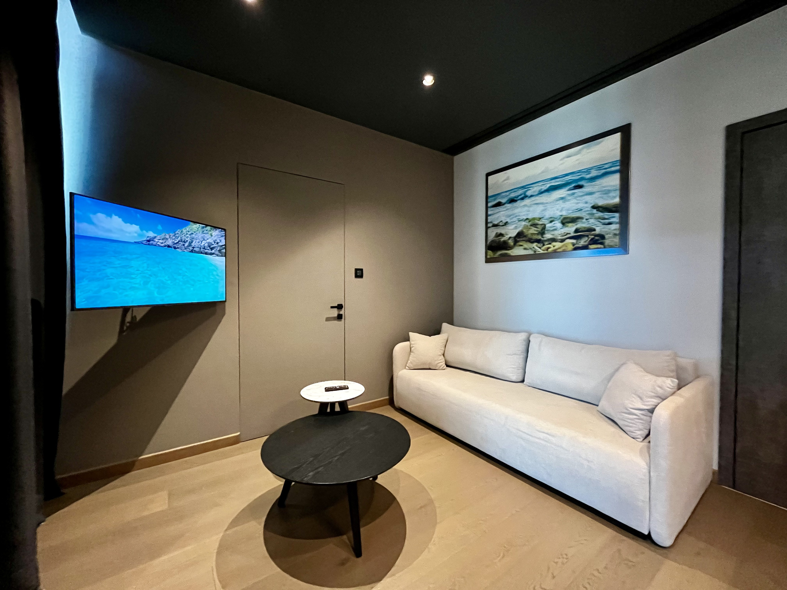The apartment features a cozy bedroom, perfect for families, small groups and digital nomads. The bedroom is furnished with a comfortable double bed with an orthopaedic mattress. Premium linens ensure a peaceful night's sleep.