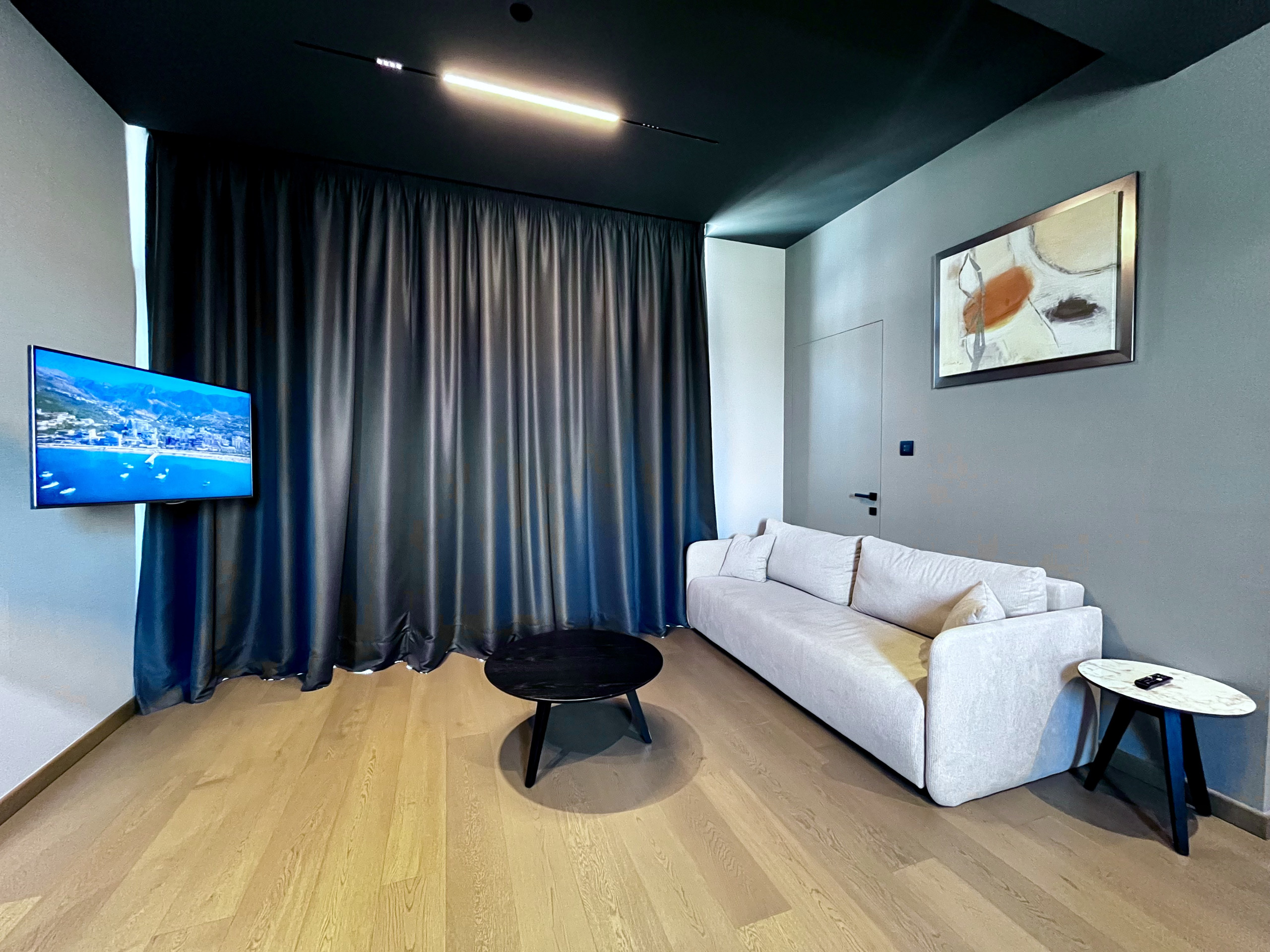 The apartment features a cozy bedroom, perfect for families, small groups and digital nomads. The bedroom is furnished with a comfortable double bed with an orthopaedic mattress. Premium linens ensure a peaceful night's sleep.
