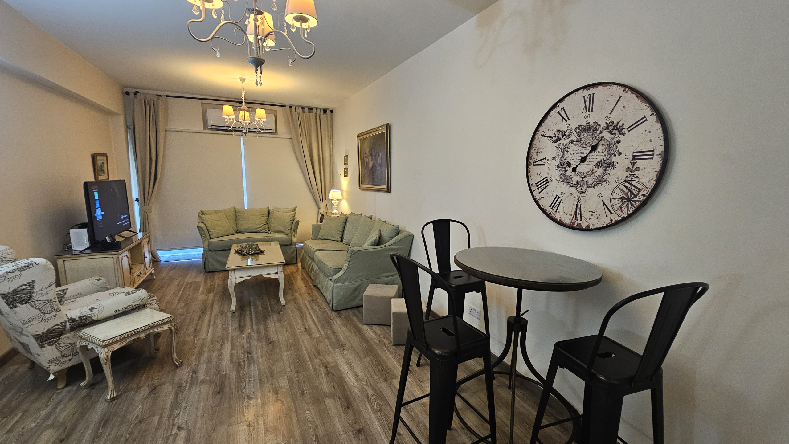 The apartment features 2 bedrooms, the master bedroom has a double bed and the second bedroom has a sofa bed, ensuring a restful night's sleep after exploring the vibrant streets of Nicosia. The living room boasts a welcoming atmosphere, complete with a sofa for relaxation, where you can enjoy your favorite shows on the provided TV. The apartment designated workspace for those who need to stay connected or get some work done during their stay.