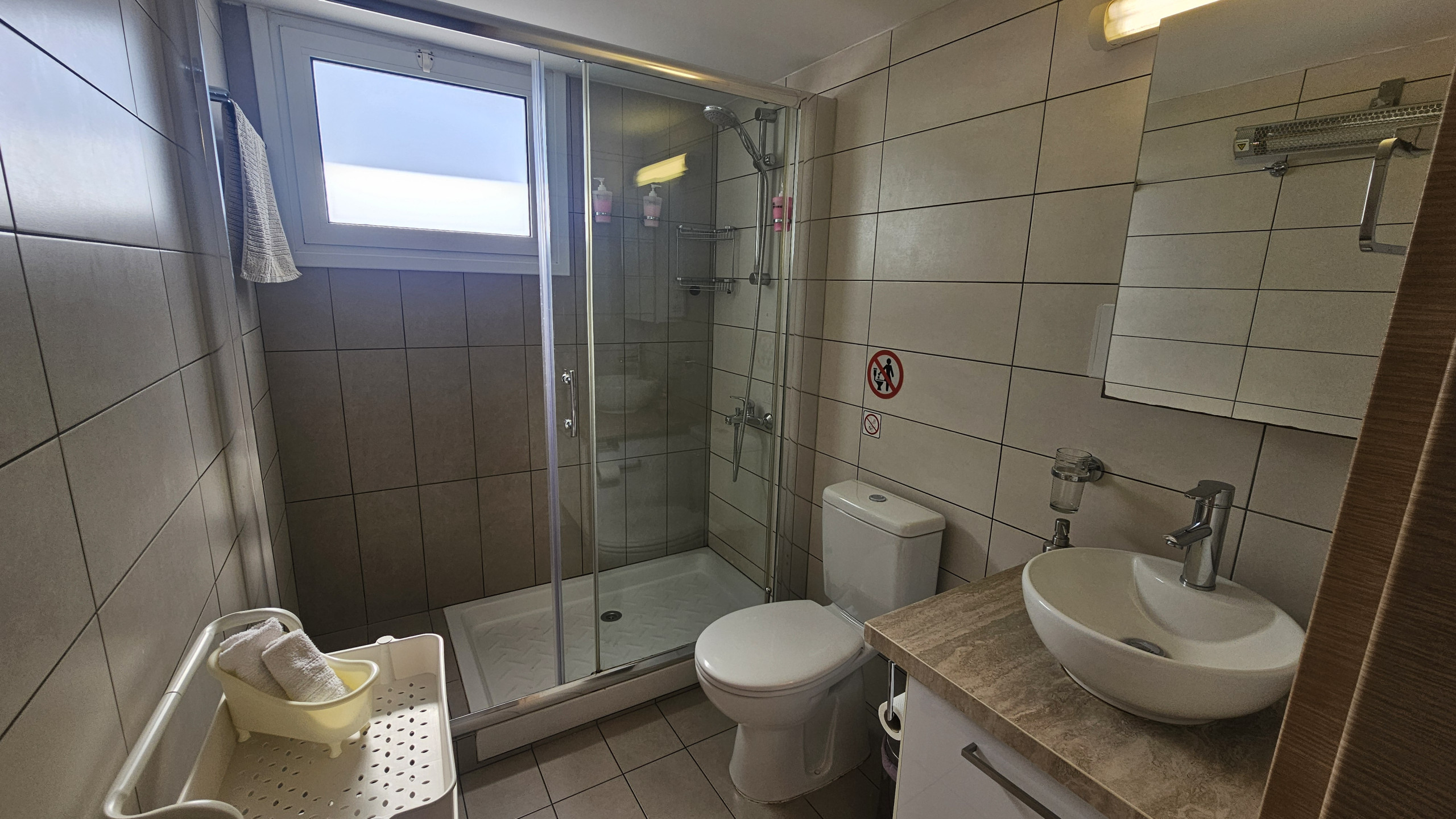 The apartment has 1 double bed with a comfortable mattress that guarantees a comfortable sleep. The bathroom is simple and user-friendly, providing a pleasant and convenient shower experience. Also, it features a washing machine for your comfortable stay.