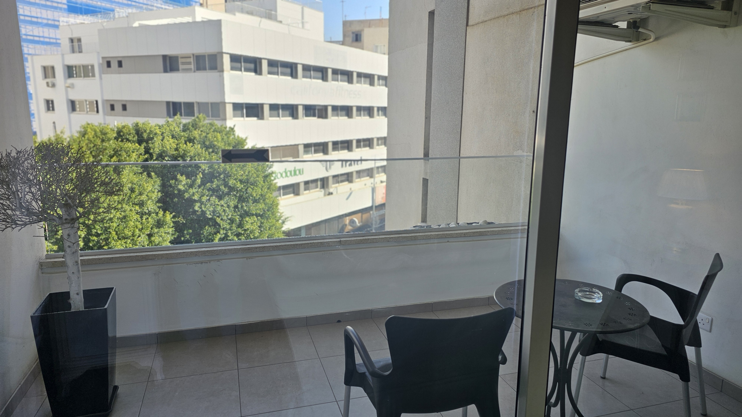 Step outside onto the spaciousl balcony and soak in the city ambiance. A table and chairs invite you to enjoy a morning coffee or a glass of wine in the evening, offering a perfect spot to unwind and take in the energy of Nicosia.