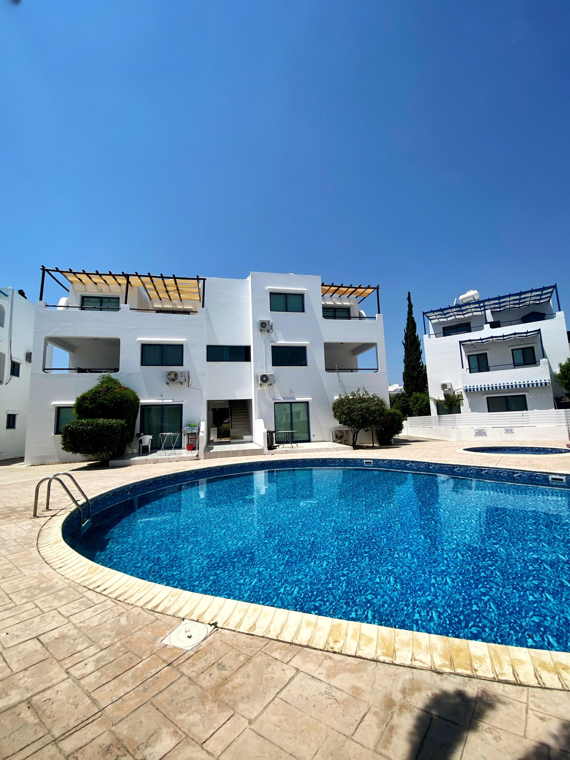 Located in a quiet neighborhood, the property offers the perfect balance between convenience and relaxation—just 2.5 km from Paphos city center and the same distance to the nearest beach.