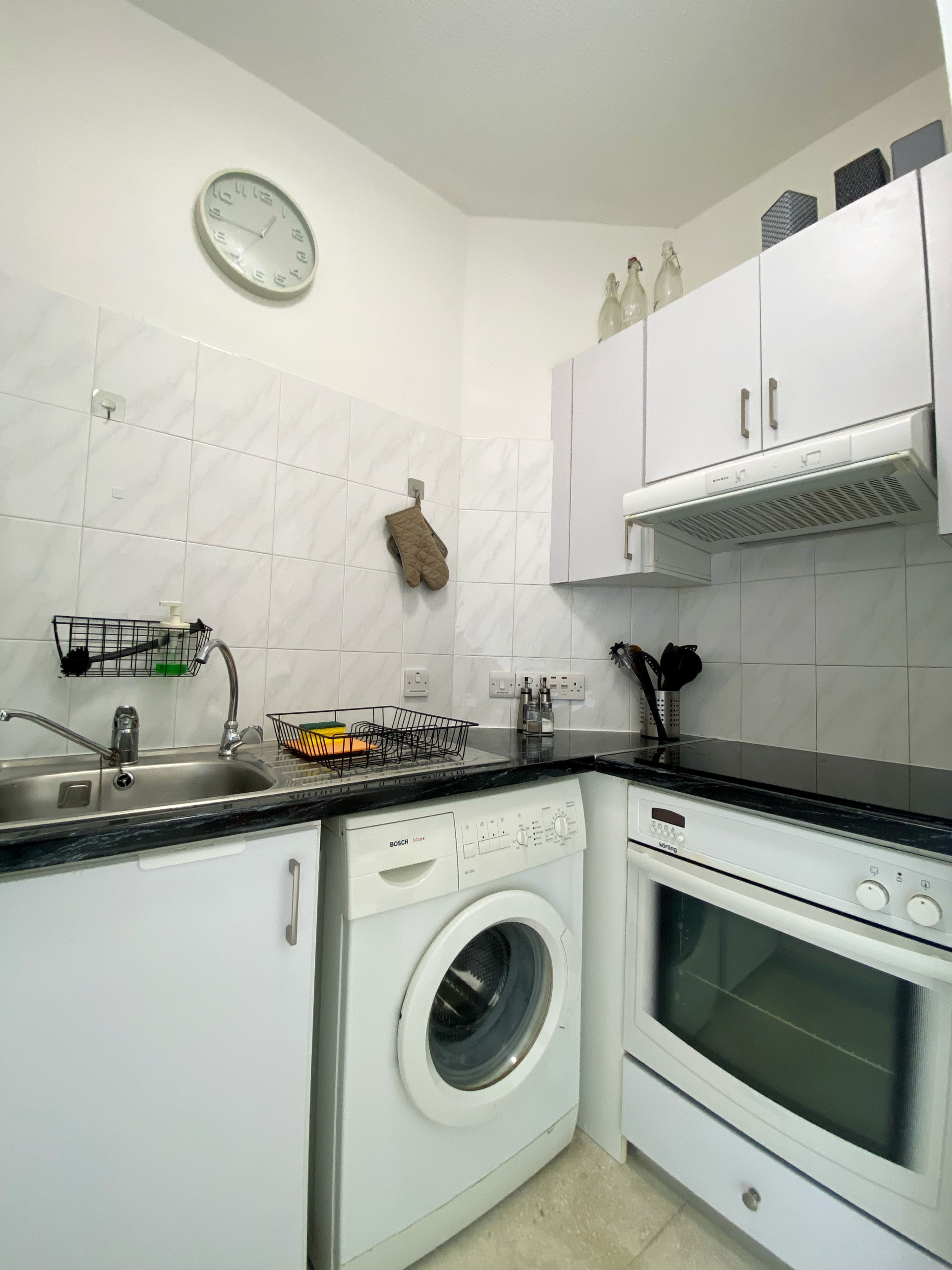 As you walk into the apartment you will come upon the well-designed living area! You will find the fully equipped kitchen featuring a fridge, a stovetop, a kettle, all the cookware you will need along with enough plates and cutleries for you and everyone else staying at the property with you.