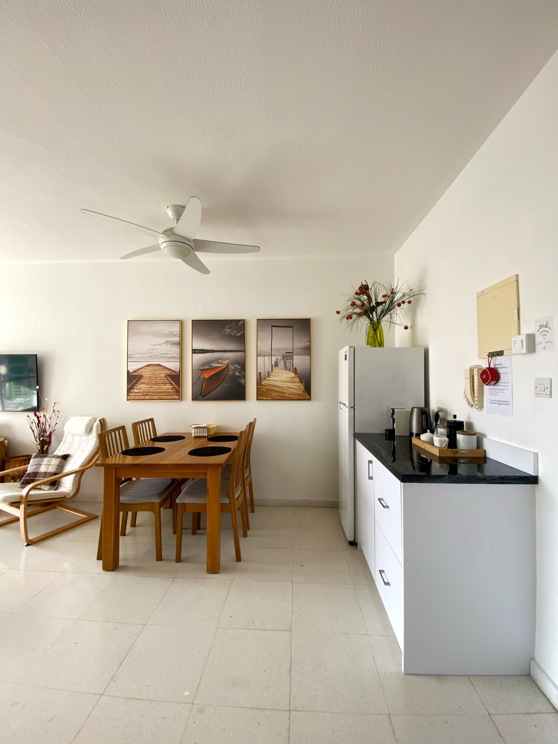 The apartment is cozy, guest friendly, and highly operational, it can easily accommodate up to 4 adults, it is fully air-conditioned to keep you cool during the hot sunny days, and has a private balcony where you can sit and enjoy your time with your morning tea or that cold beer in the afternoon.