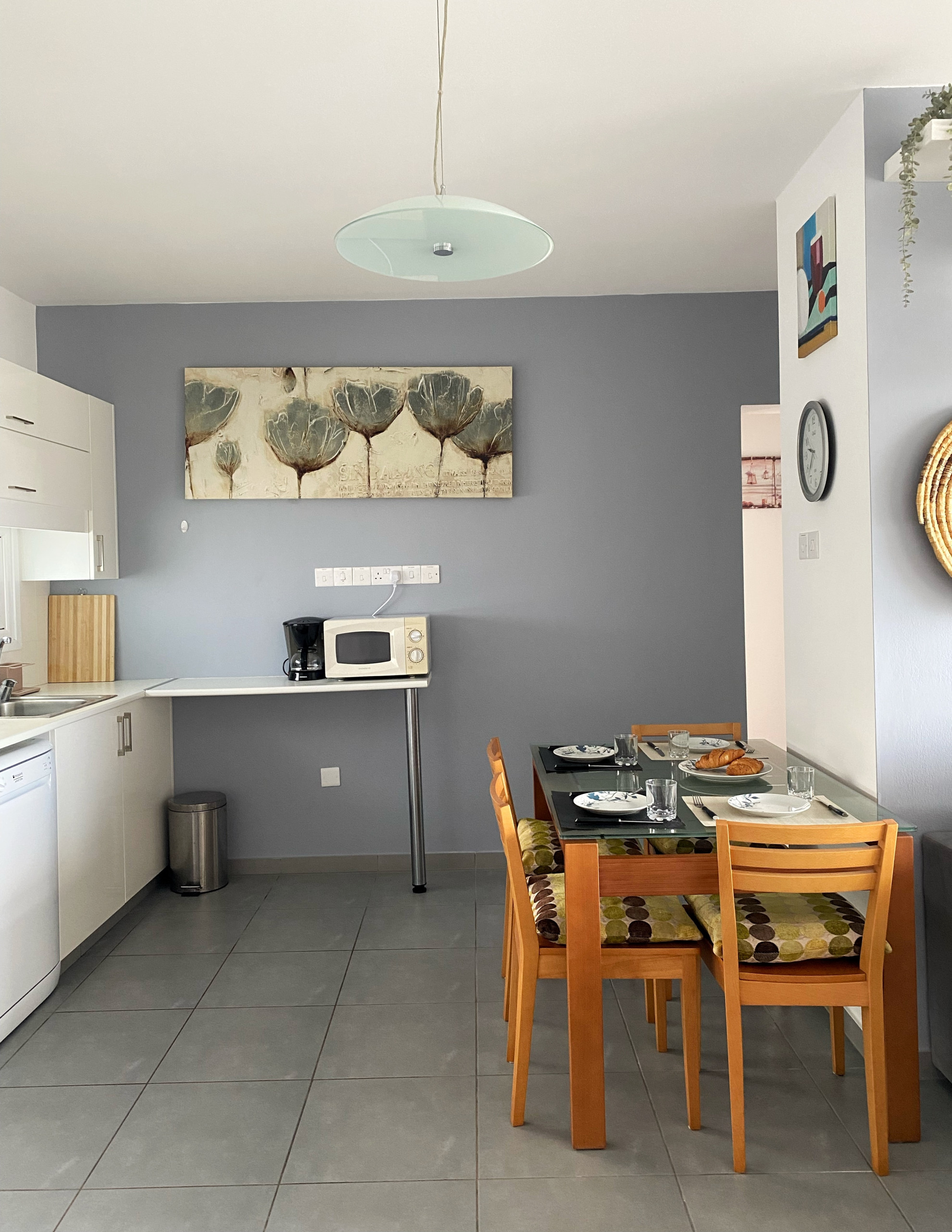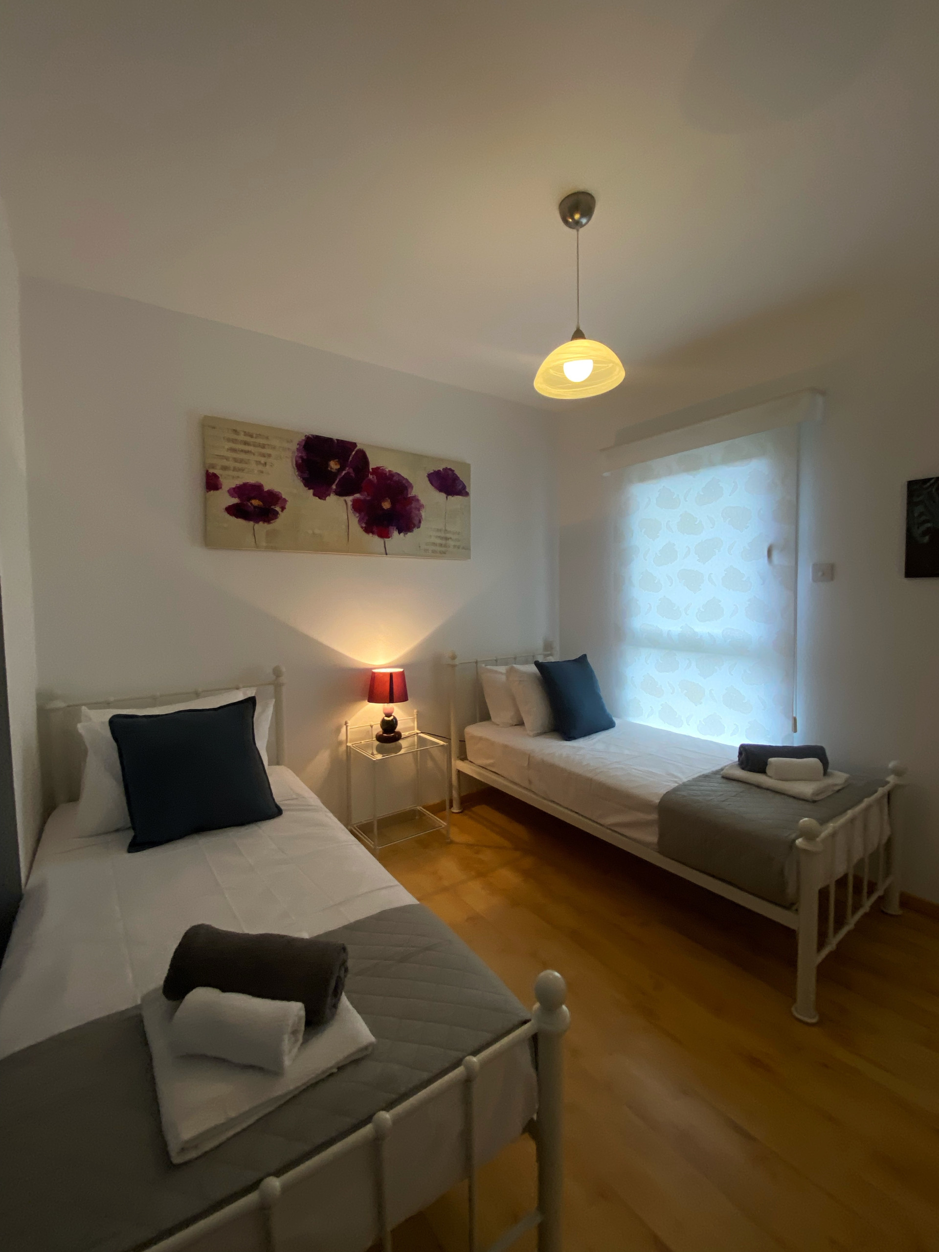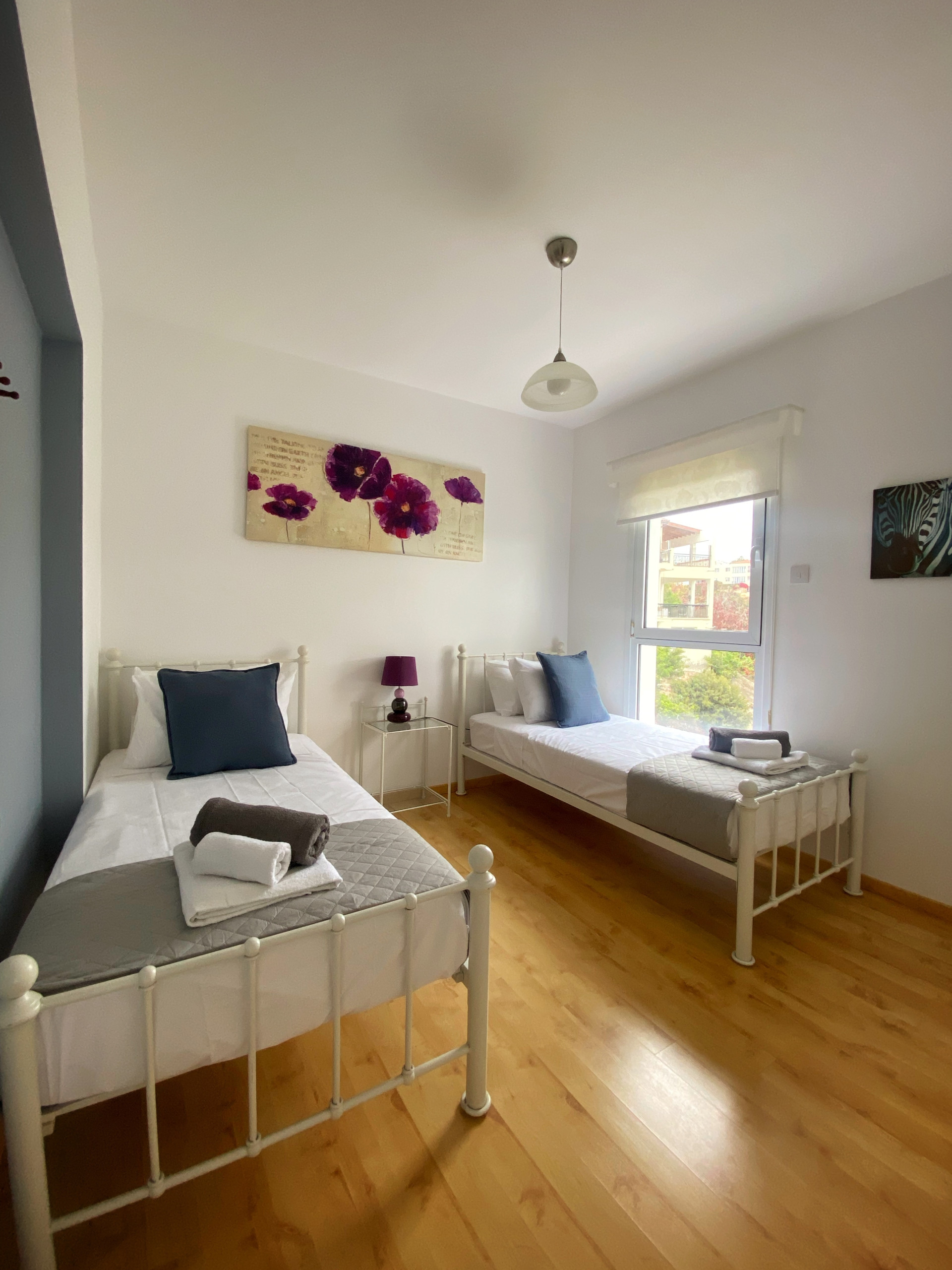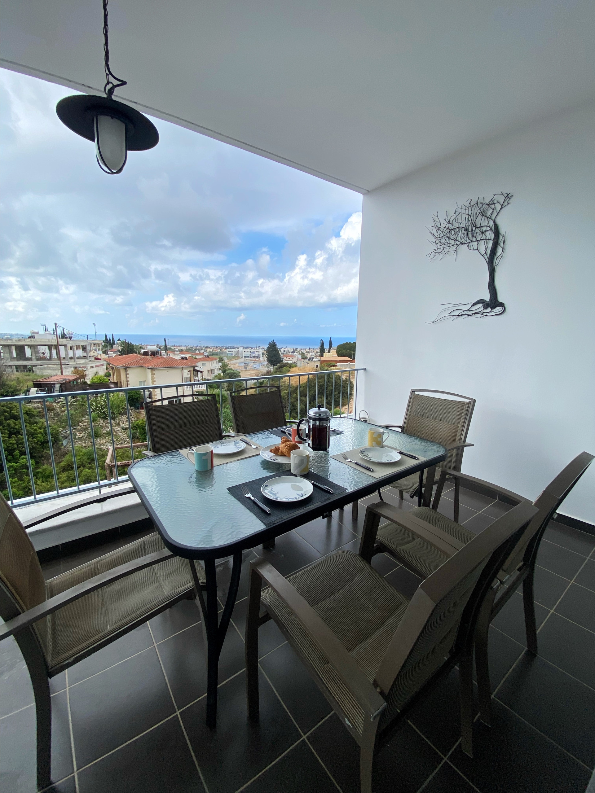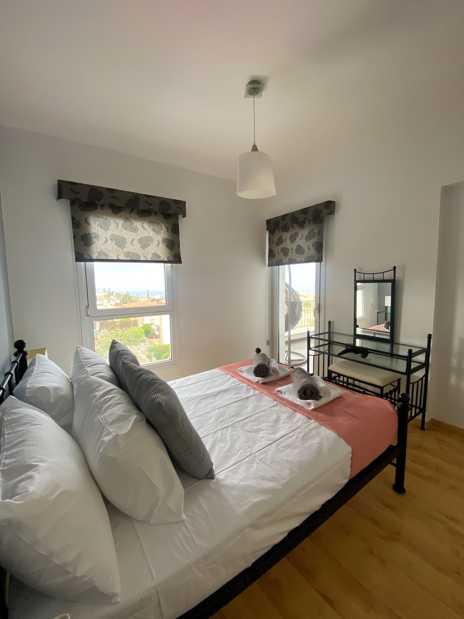 Kick back, relax and enjoy the beautiful view in this calm and stylish 2-bedroom apartment located in one of the quietest areas of Peyia!