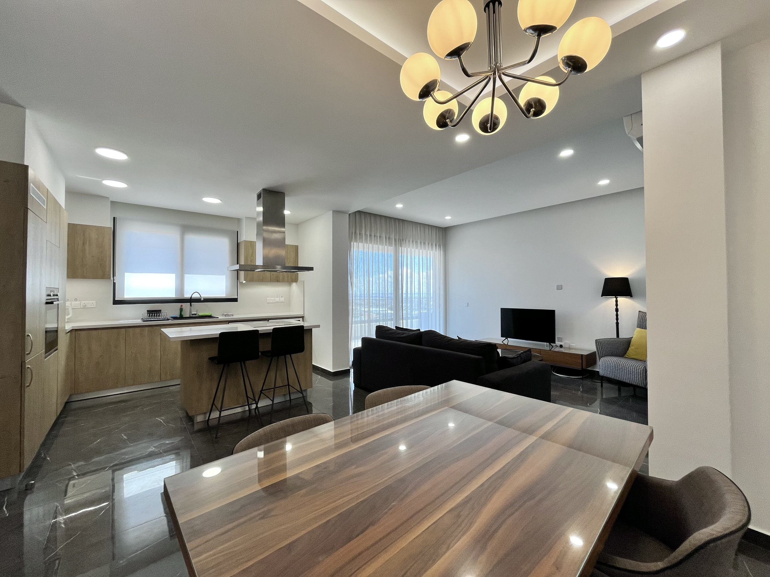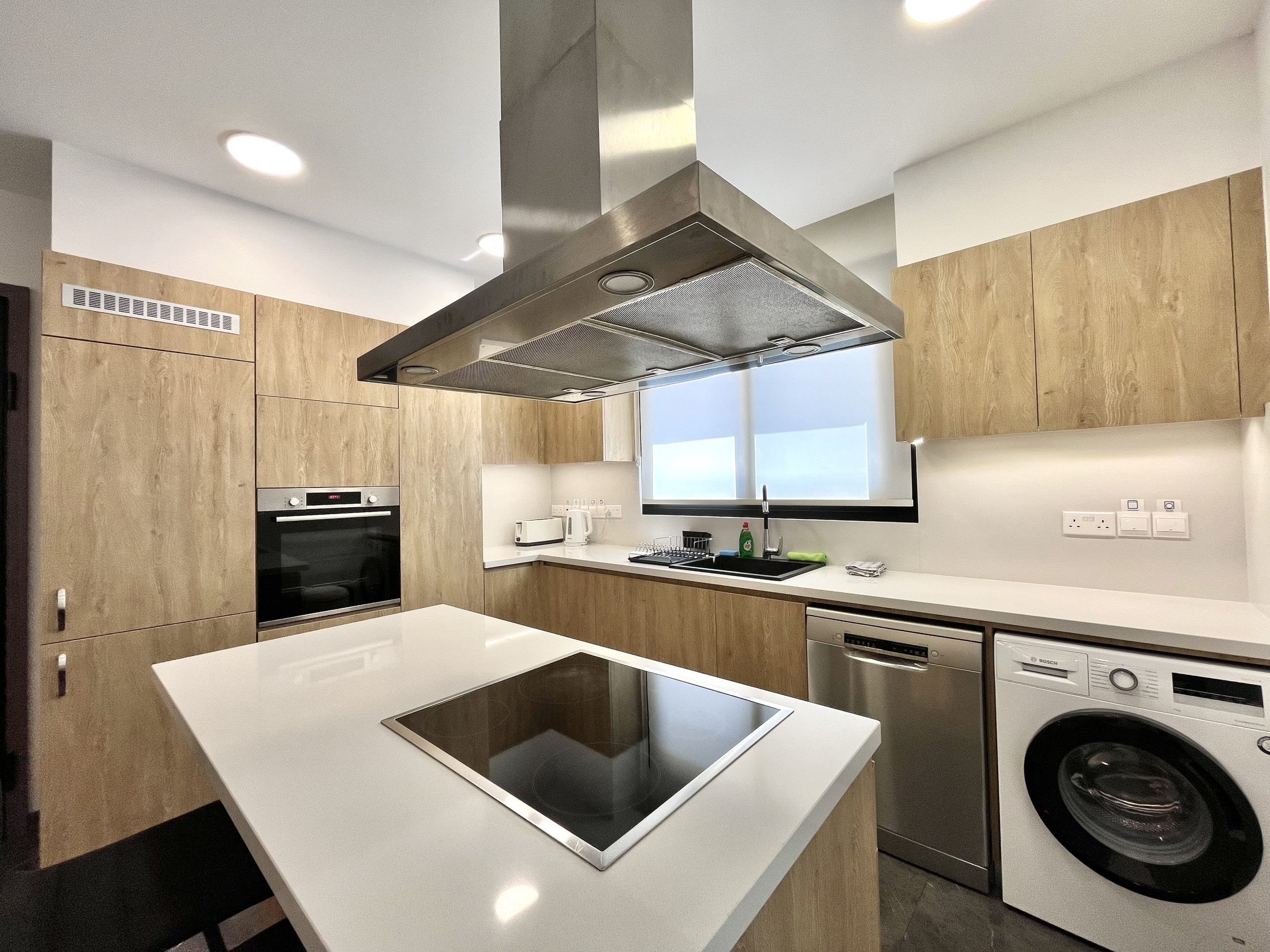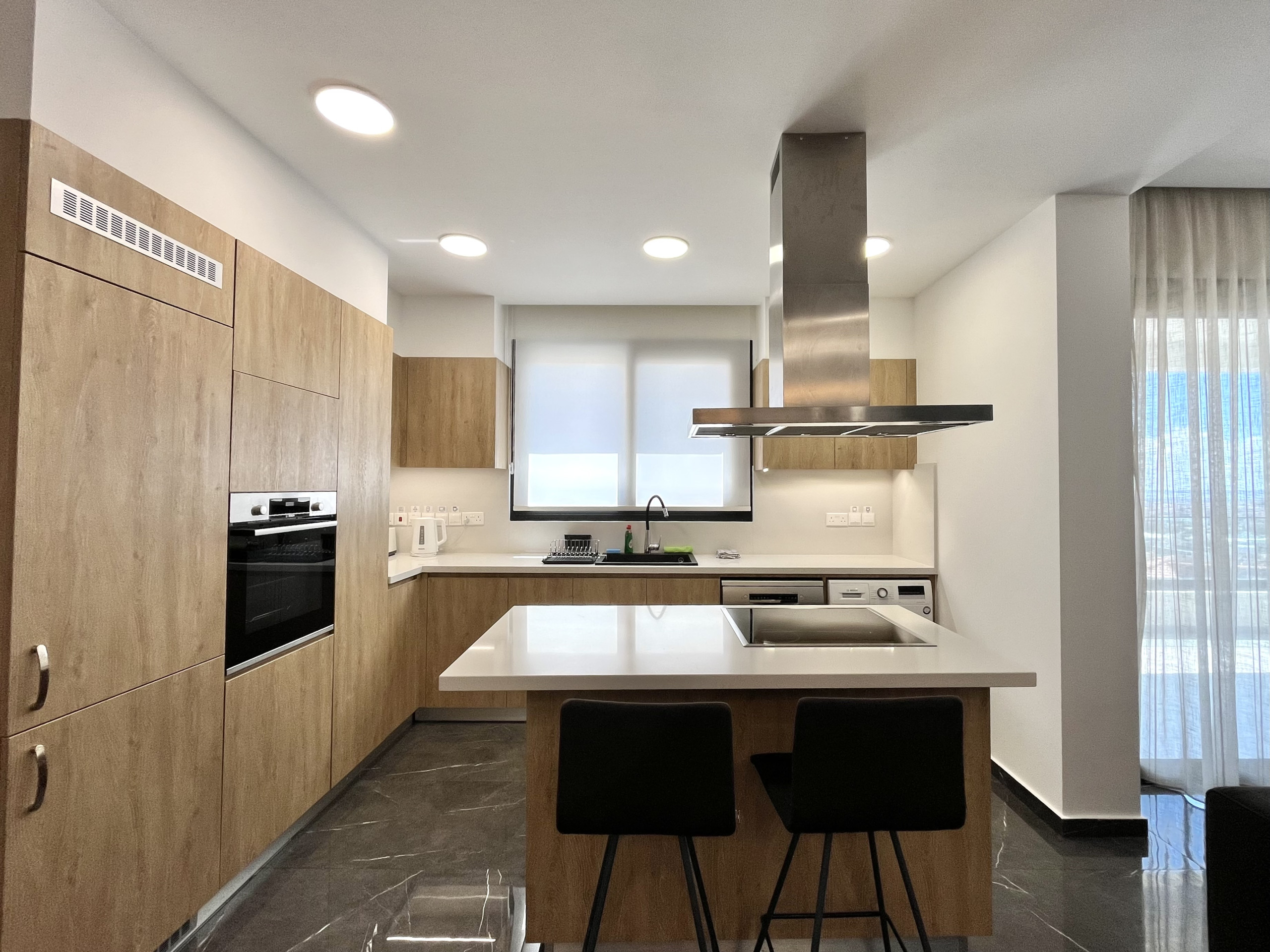 апартаменты в Agios Athanasios 4 количество спален вместимостью на 6 чел. Проживание из 130 кв.м. Размещение имеет лифт, сад, Терраса, стиральная машина, Барбекю, утюг, Доступ в интернет (wi-fi), Фен, Балкон, кондиционер, бассейн собственный бассейн, Открытая парковка в этом же здании, телевизор. Кухня, совмещенная с залом, оснащена электрической плитой, оборудовано холодильник, микроволновая печь, духовка, посудомоечная машина, столовые приборы, кухонная утварь, тостер и Чайник.