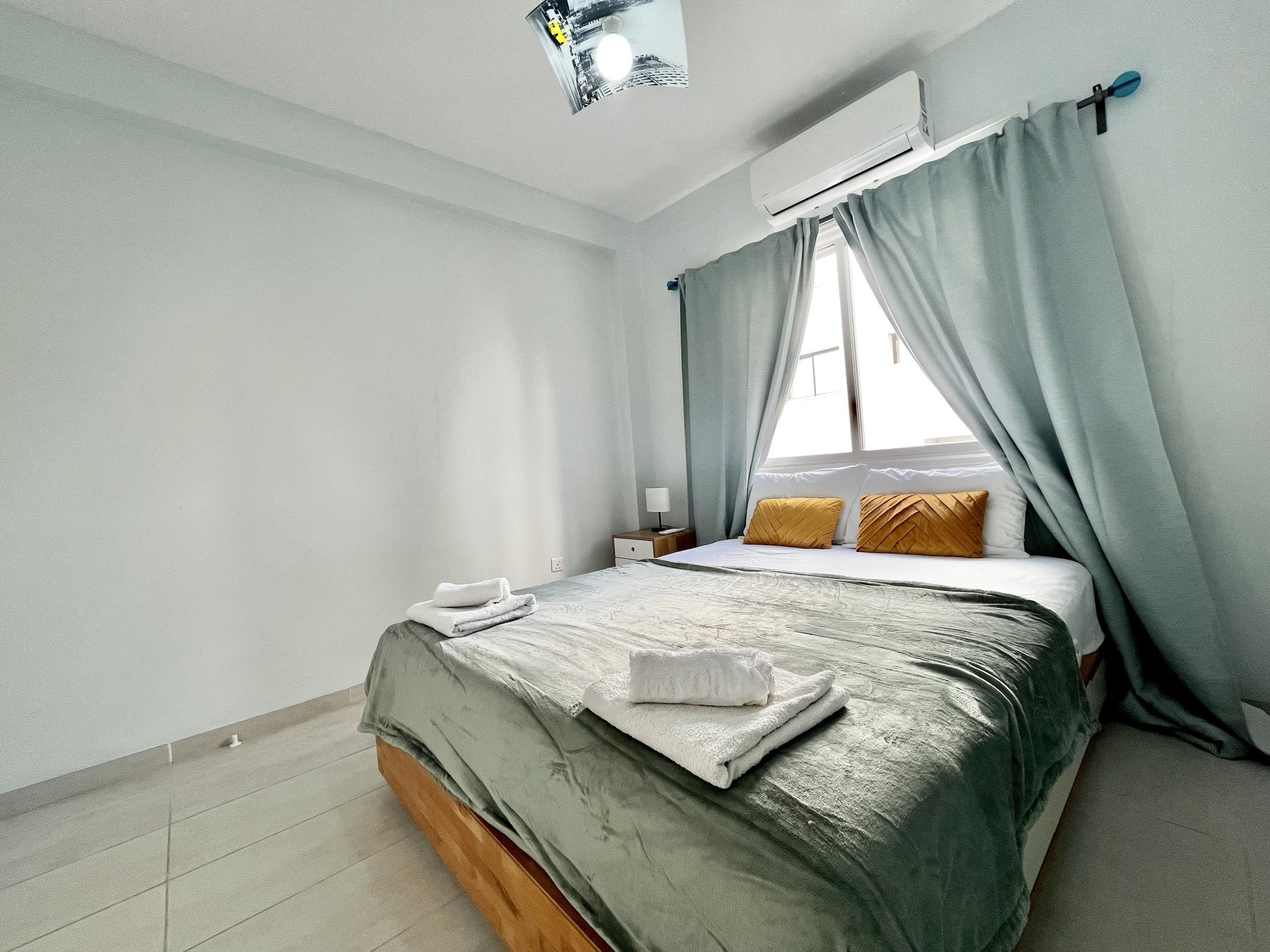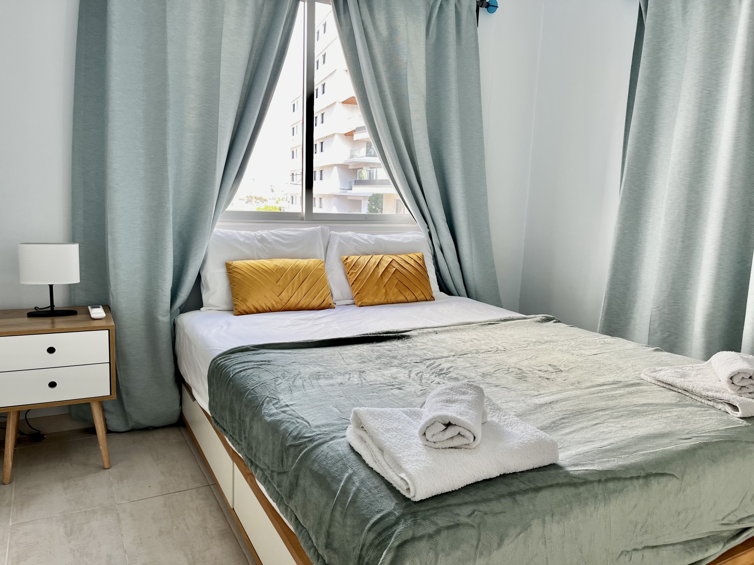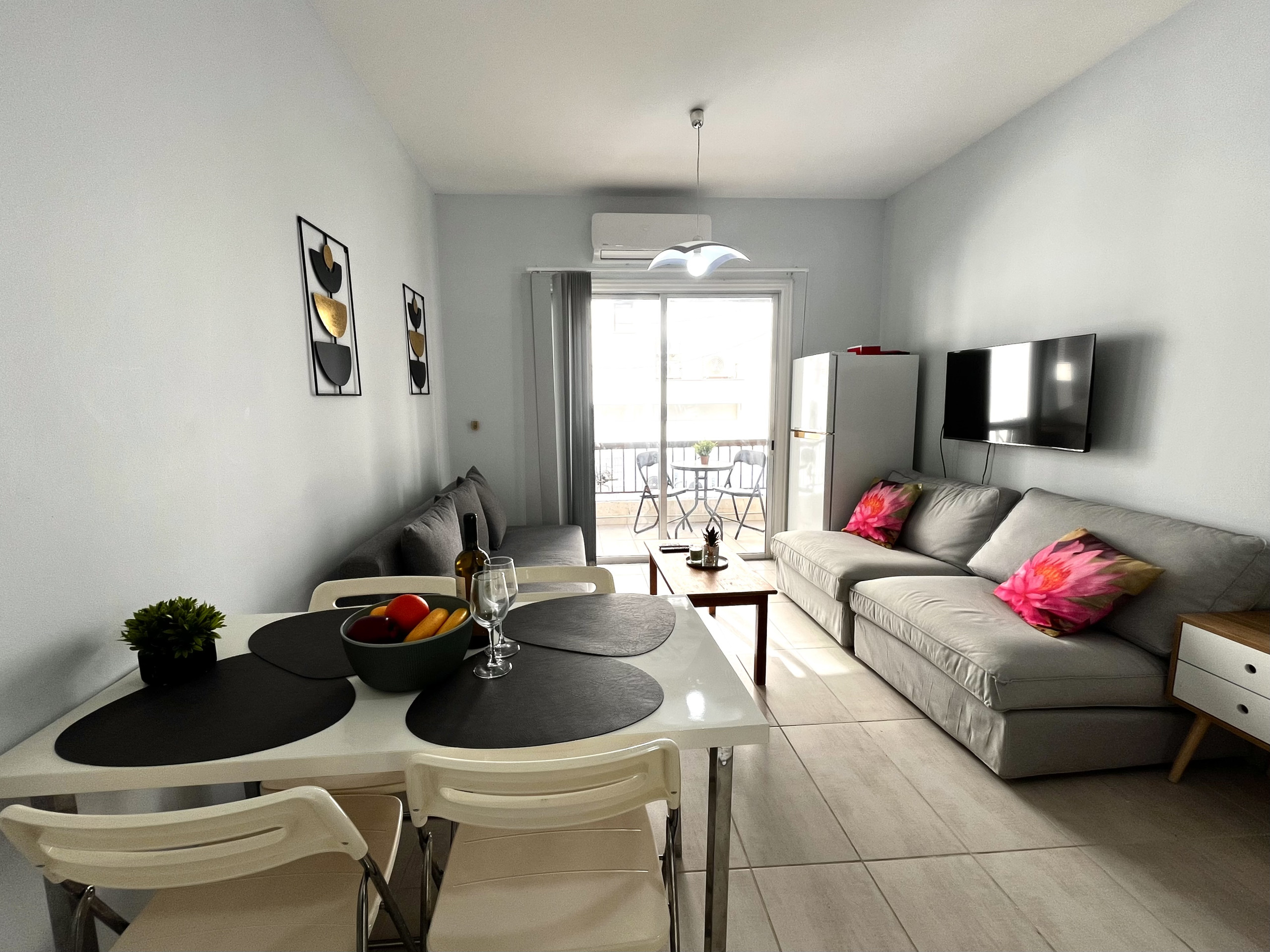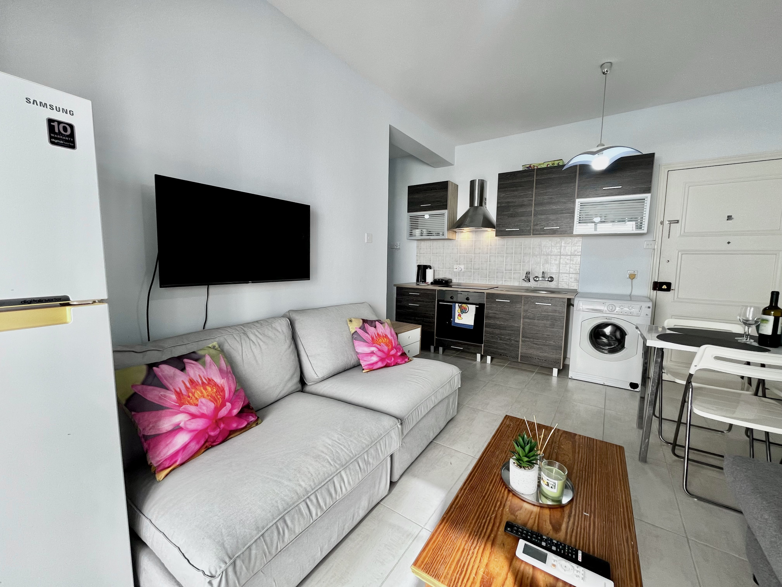 апартаменты в Larnaca 1 количество спален вместимостью на 4 чел. Проживание из 45 кв.м. Размещение имеет стиральная машина, утюг, Доступ в интернет (wi-fi), Фен, Балкон, кондиционер, Открытая парковка в в прилегающем здании, телевизор. Кухня, совмещенная с залом, оснащена электрической плитой, оборудовано холодильник, духовка, столовые приборы, кухонная утварь, тостер и Чайник.