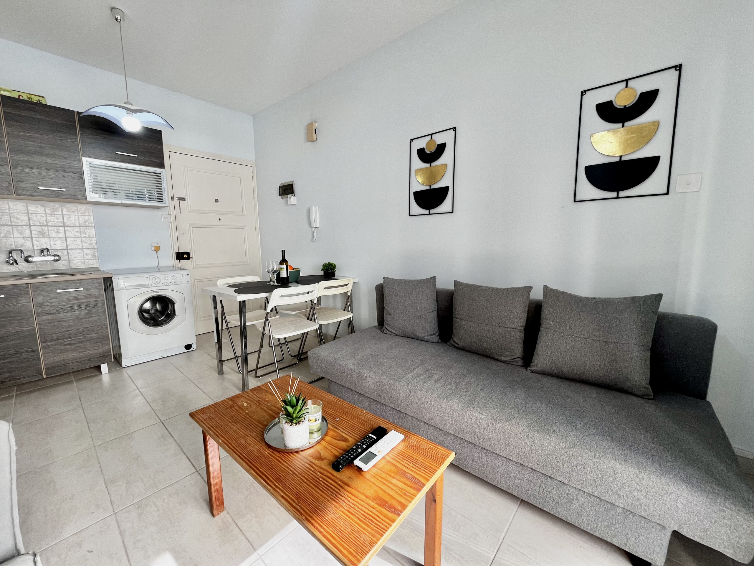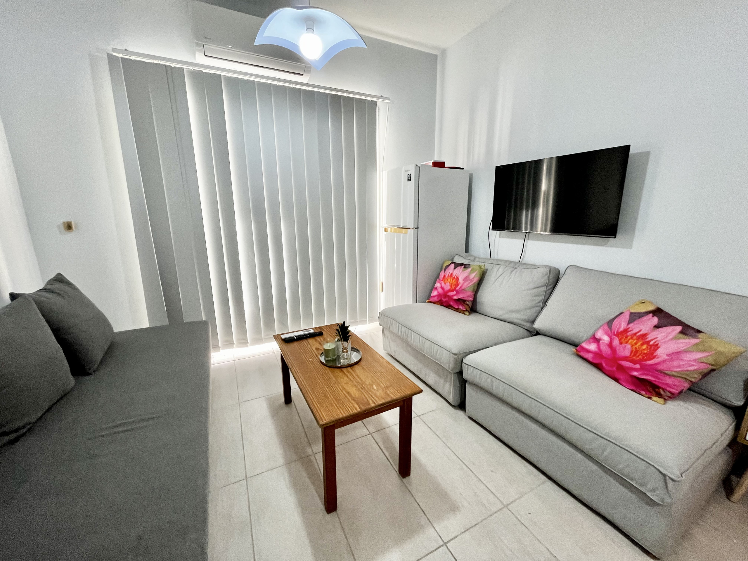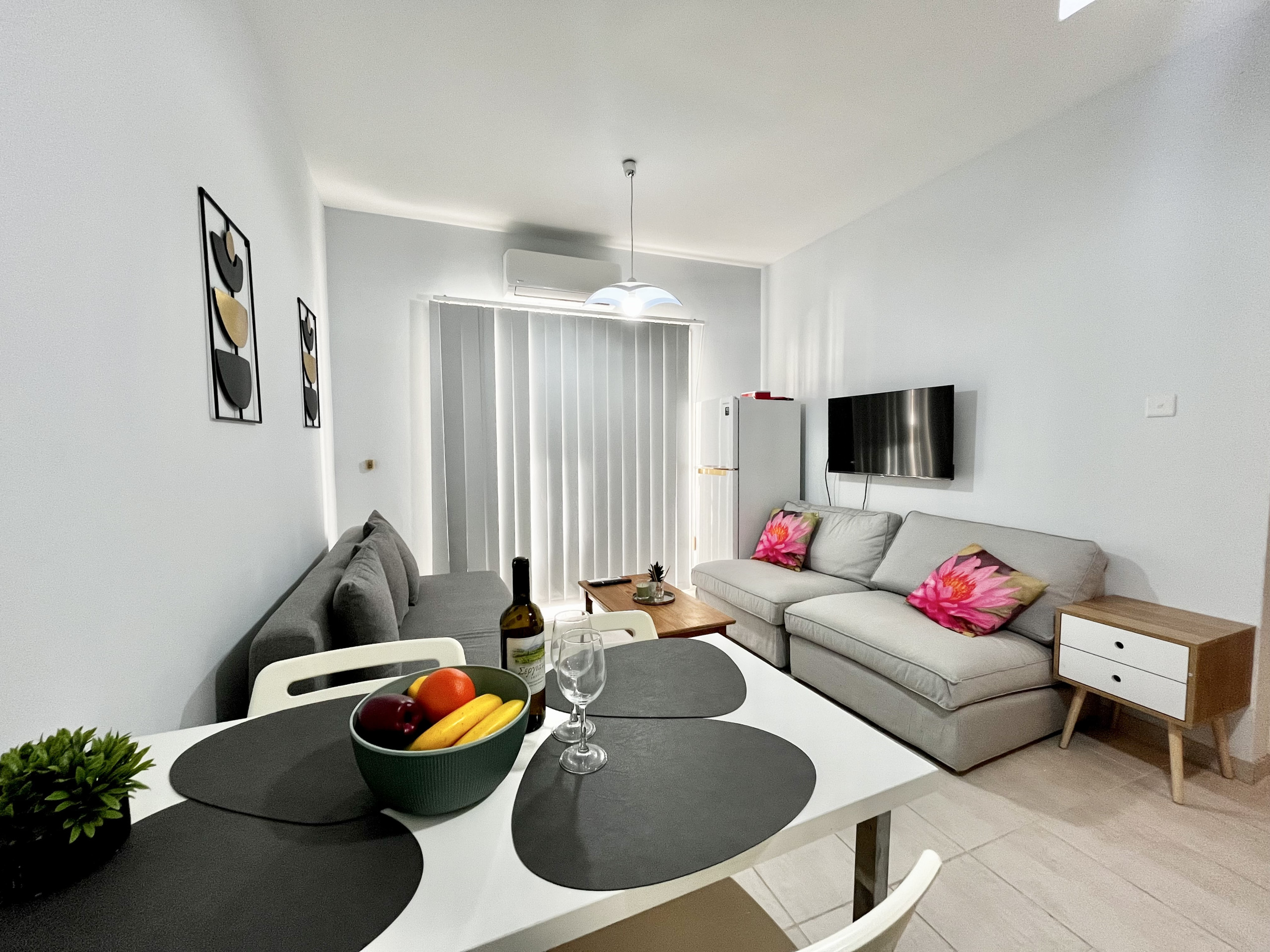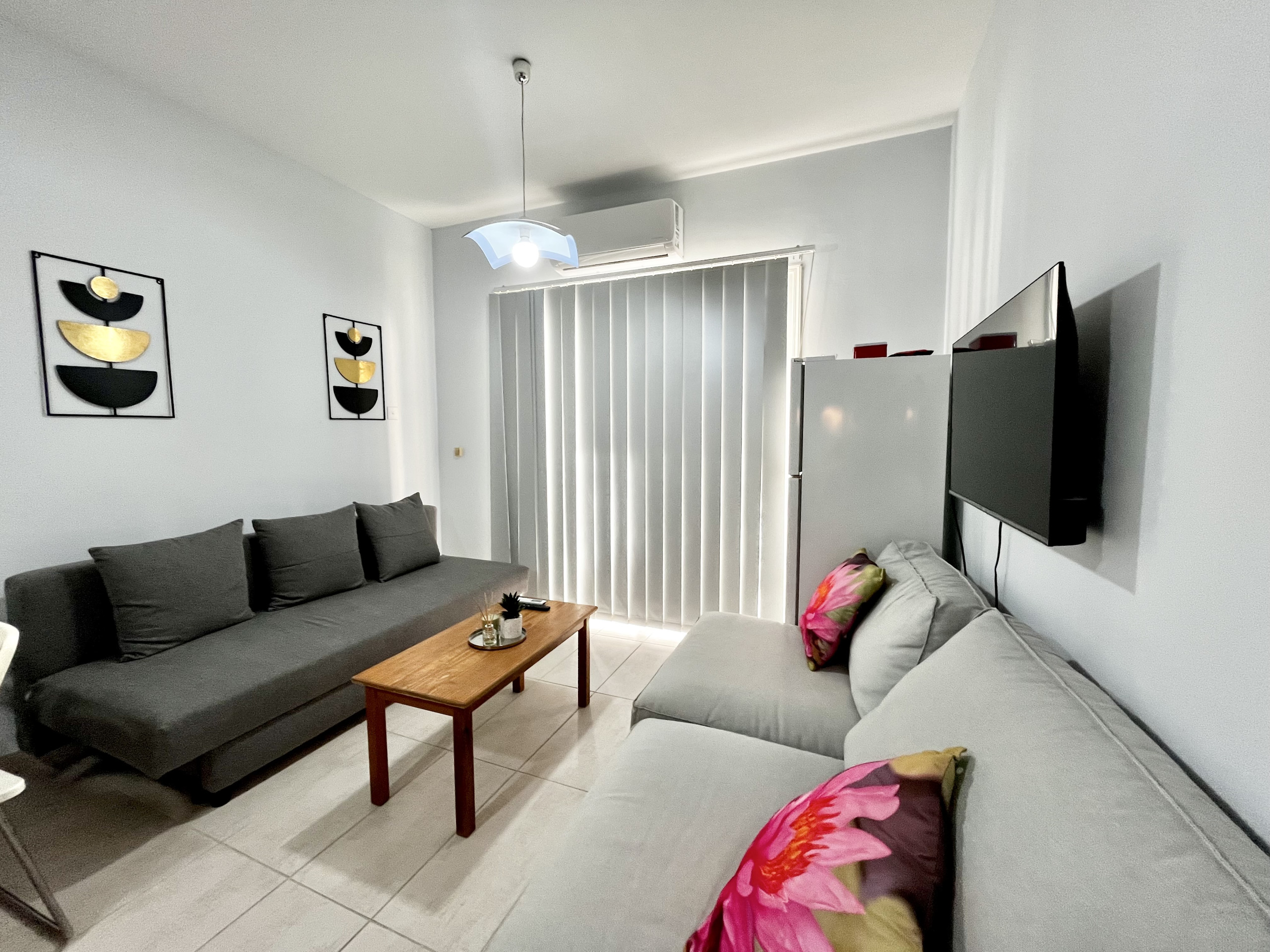 апартаменты в Larnaca 1 количество спален вместимостью на 4 чел. Проживание из 45 кв.м. Размещение имеет стиральная машина, утюг, Доступ в интернет (wi-fi), Фен, Балкон, кондиционер, Открытая парковка в в прилегающем здании, телевизор. Кухня, совмещенная с залом, оснащена электрической плитой, оборудовано холодильник, духовка, столовые приборы, кухонная утварь, тостер и Чайник.