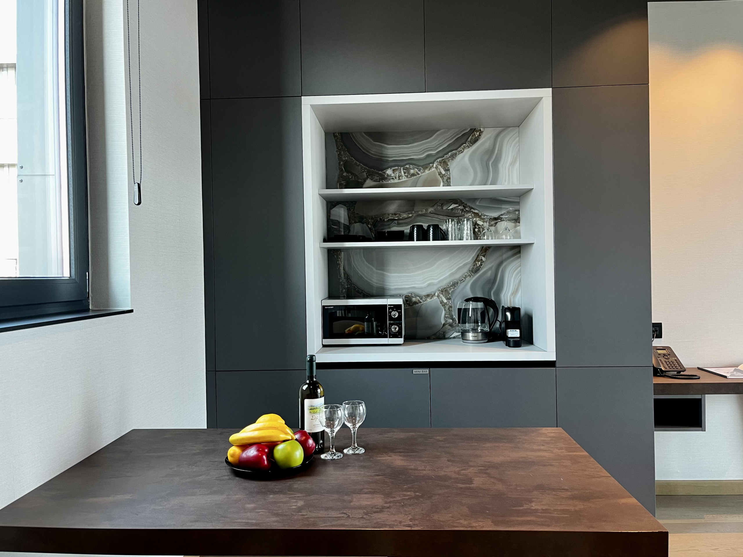 Размещение имеет лифт, утюг, сейф, Доступ в интернет (wi-fi), Фен, Балкон, кондиционер, бассейн жилого комплекса, Открытая парковка в этом же здании, телевизор.